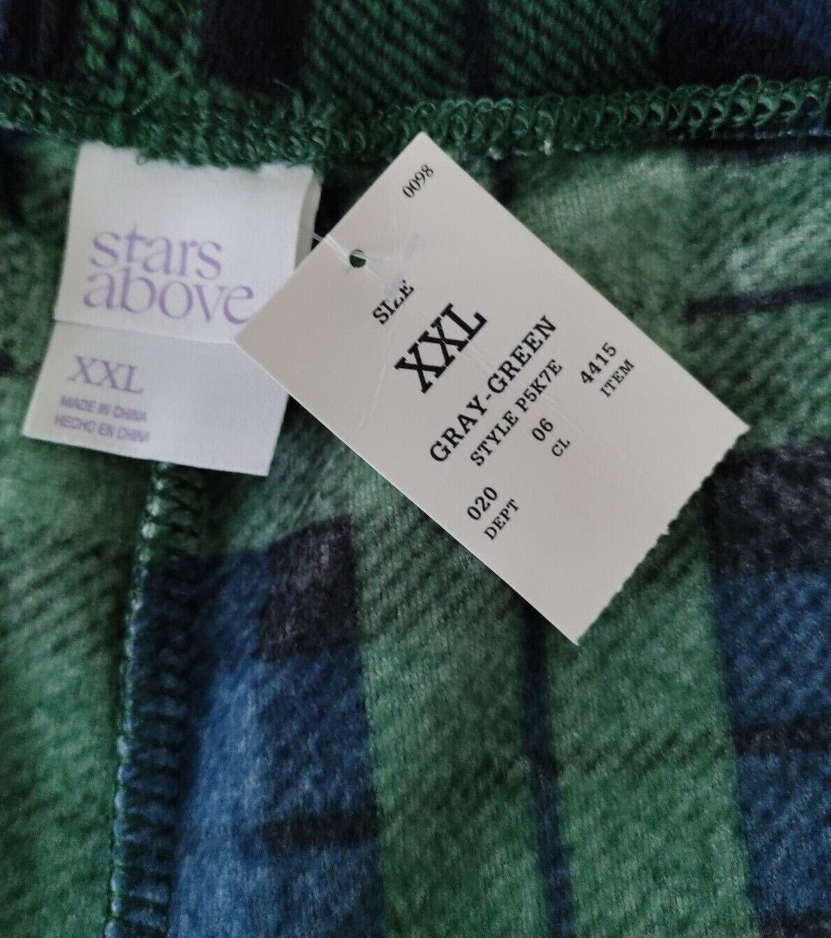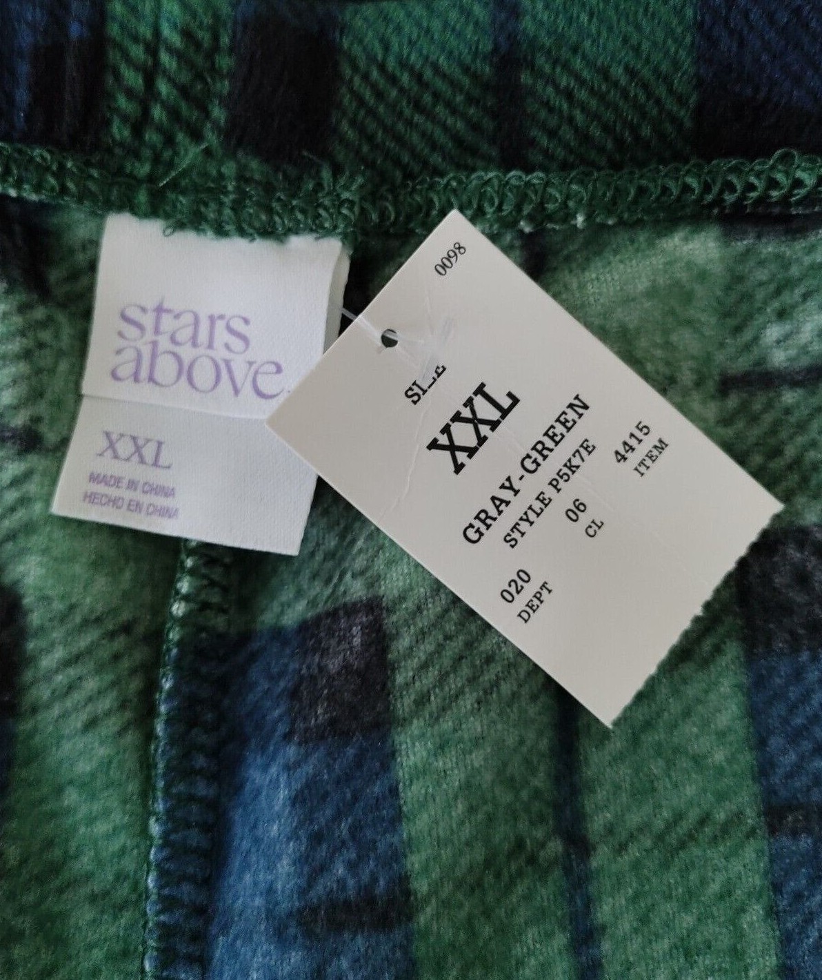 NWT WOMAN STARS ABOVE FLEECE PAJAMAS PANTS Size XXL Plaid drawstring waist Green