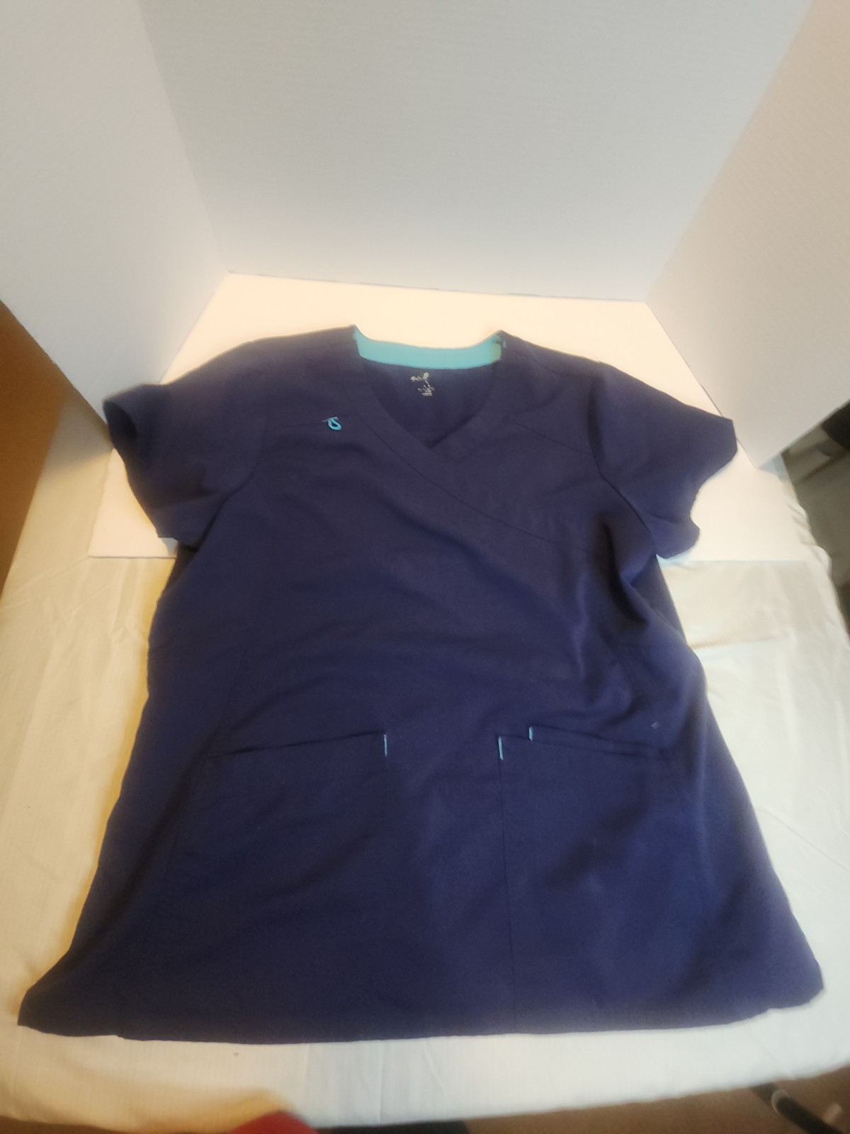как выглядит Navy Blue Short Sleeve Womens Athletic Scrub Top Size Large фото