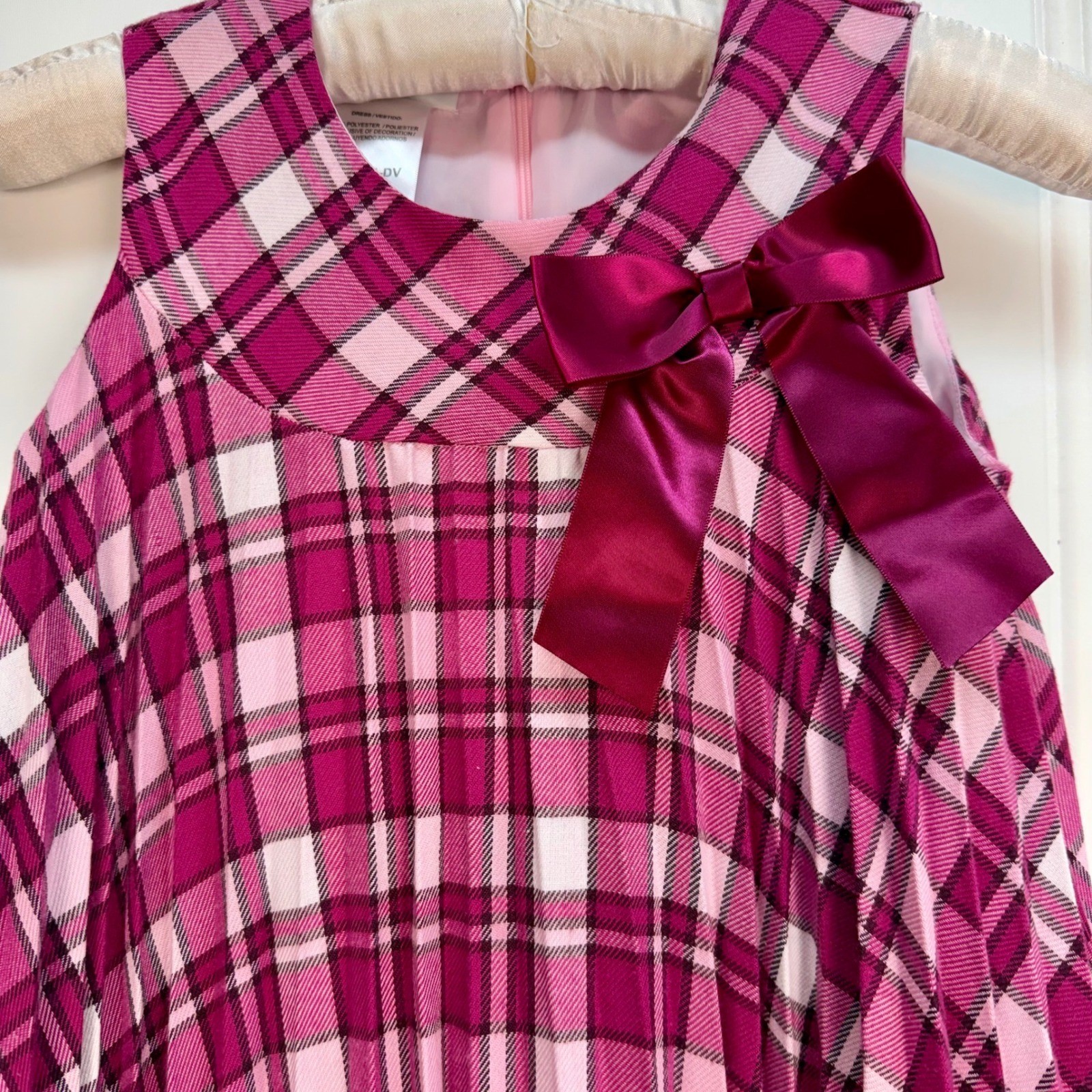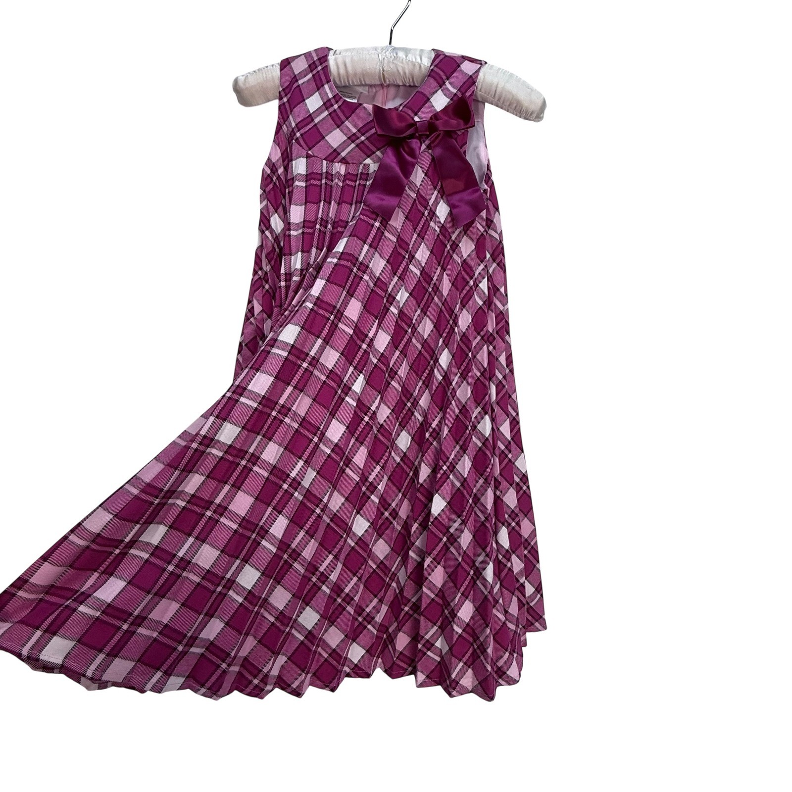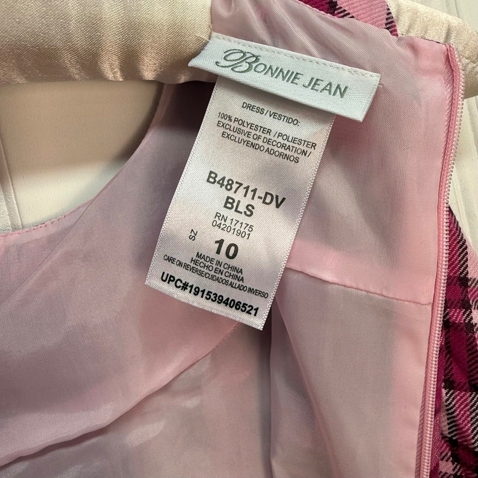 Bonnie Jean Plaid Dress Girls Size 10 Pink Purple Bow Pleated Holiday Wear