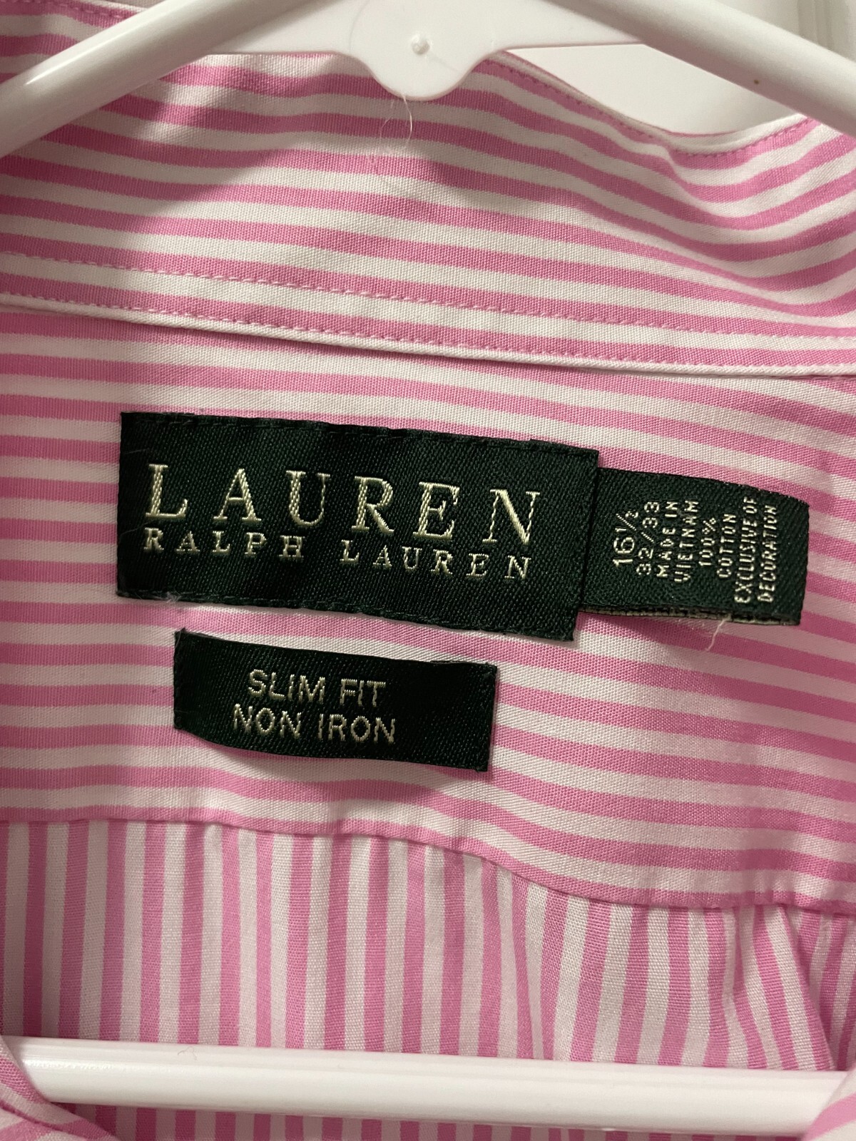 как выглядит Mens Pink/White Striped Lauren Ralph Lauren Slim Fit 16 1/2 32/33 Button Up фото