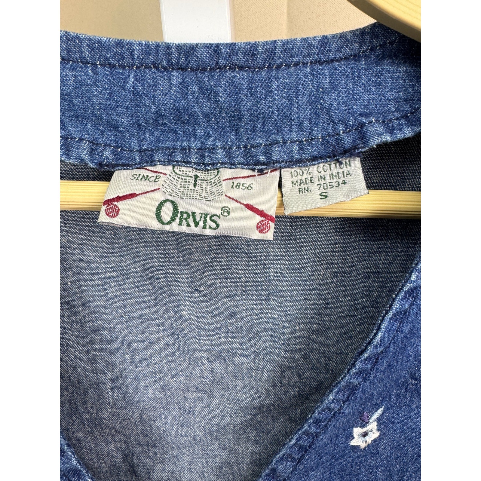 как выглядит Vintage 90s Orvis Denim Embroidered Floral Vest Womens Medium Blue 100 Cotton фото