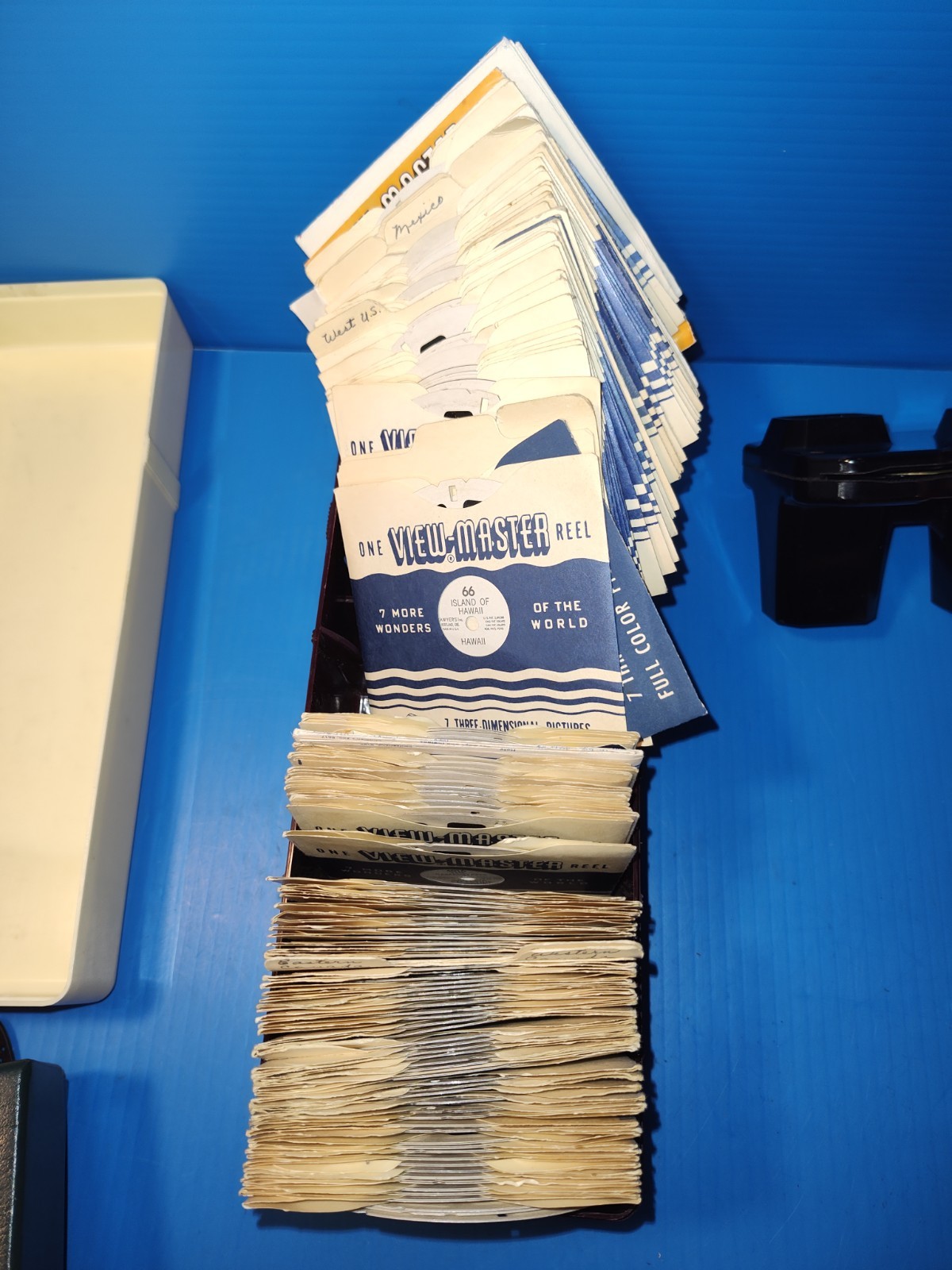 VINTAGE VIEW MASTER VIEWER REELS IN BAKELITE STORAGE BOX