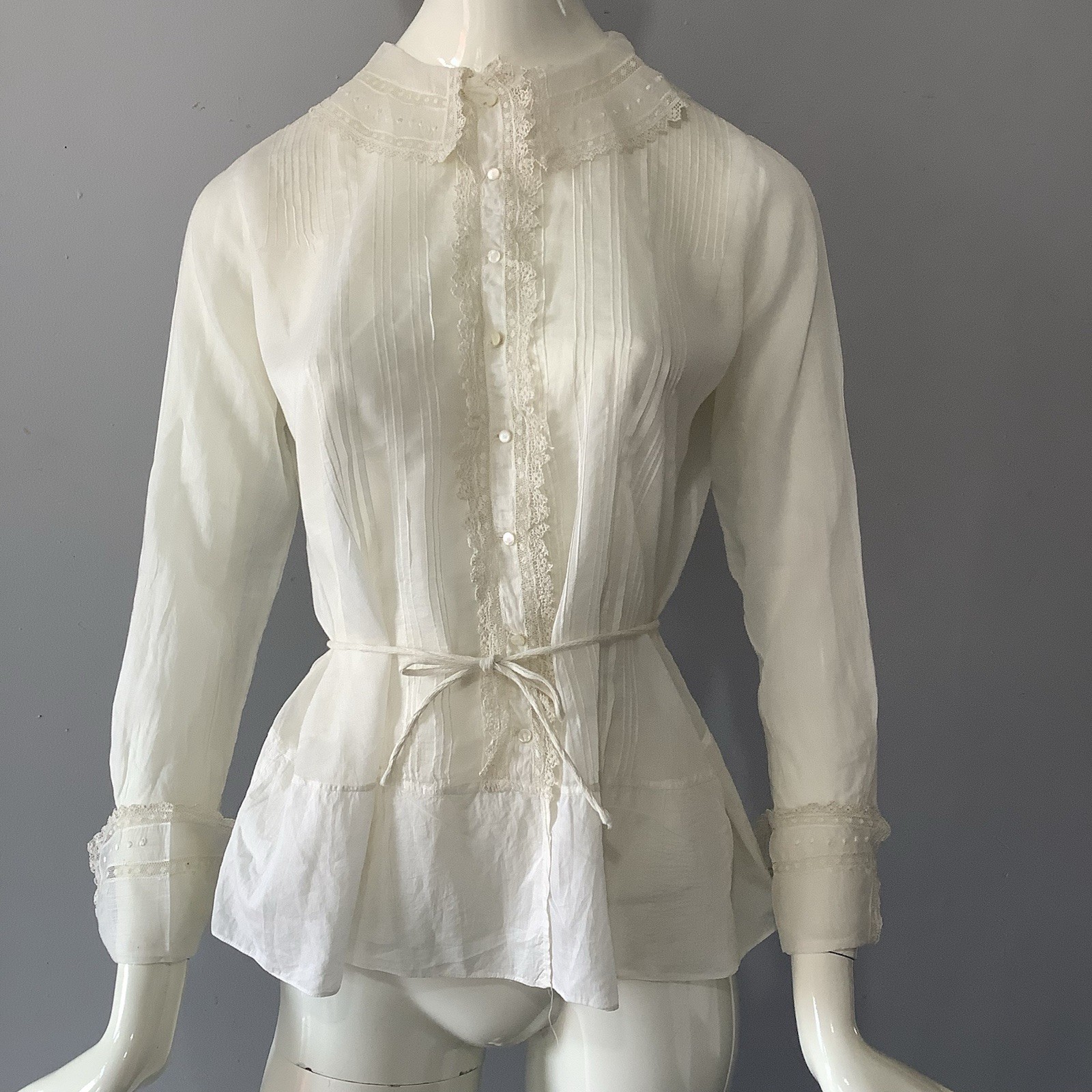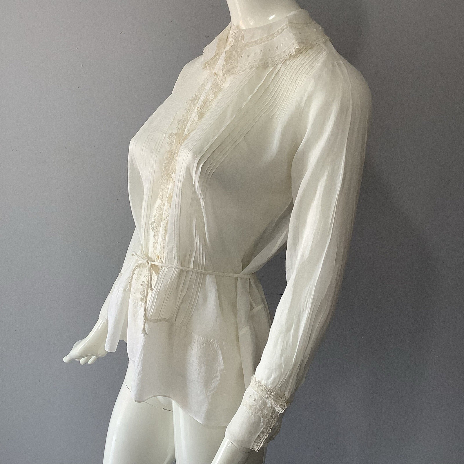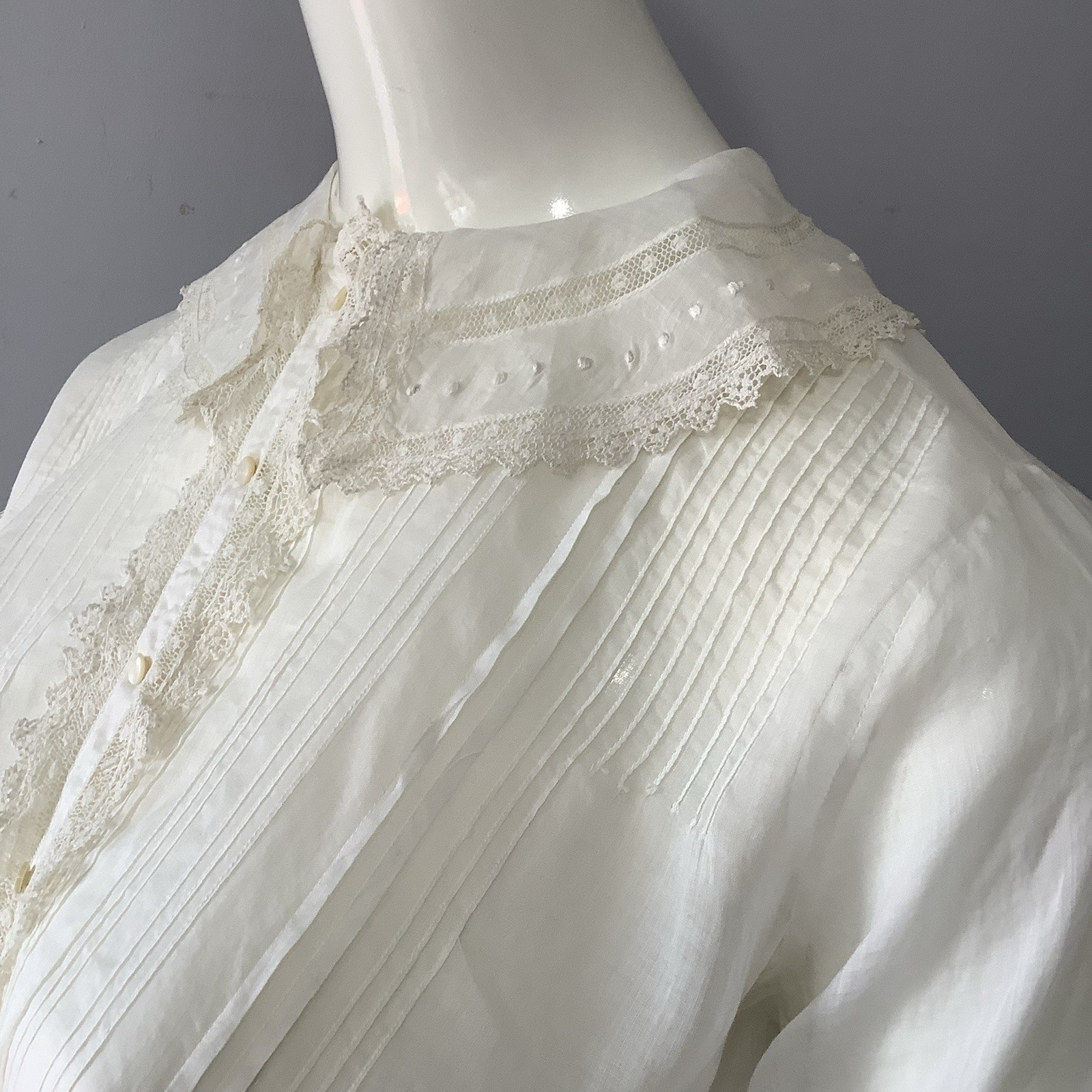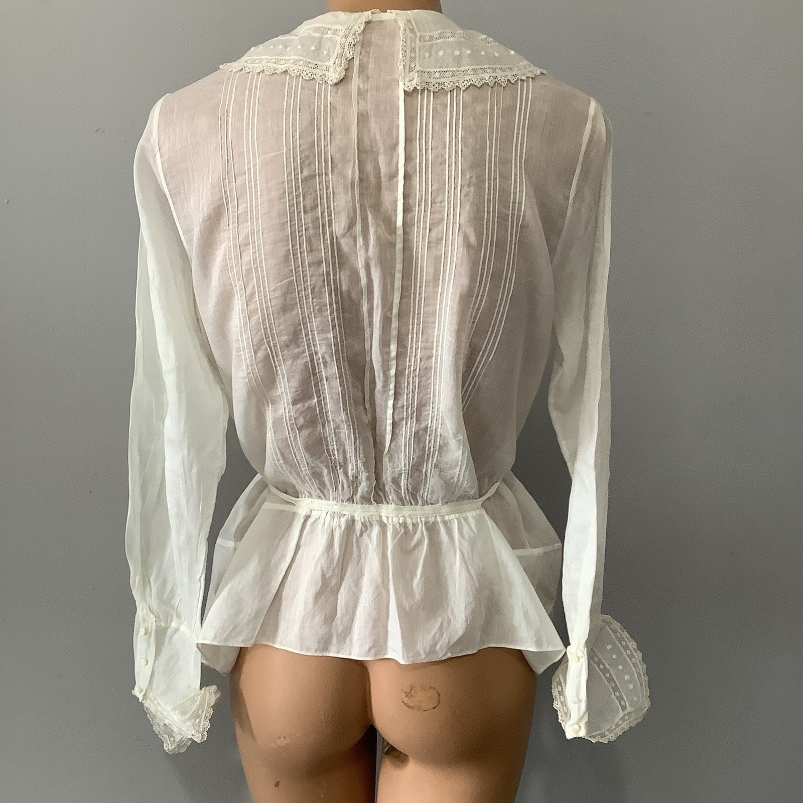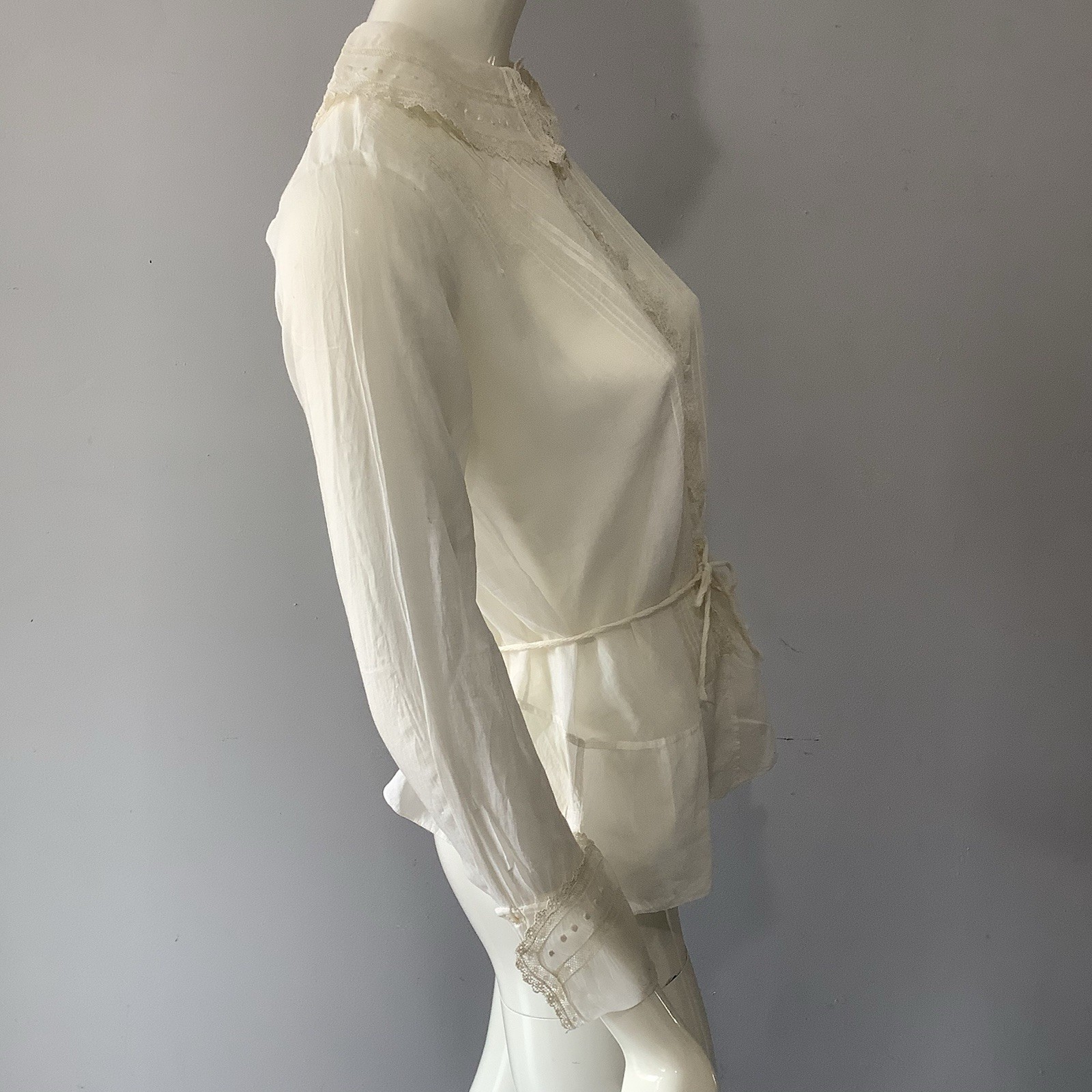 как выглядит 1900 s Edwardian White Cotton Sheer Blouse with Lace and Lace Ruffle Detail B 40 фото
