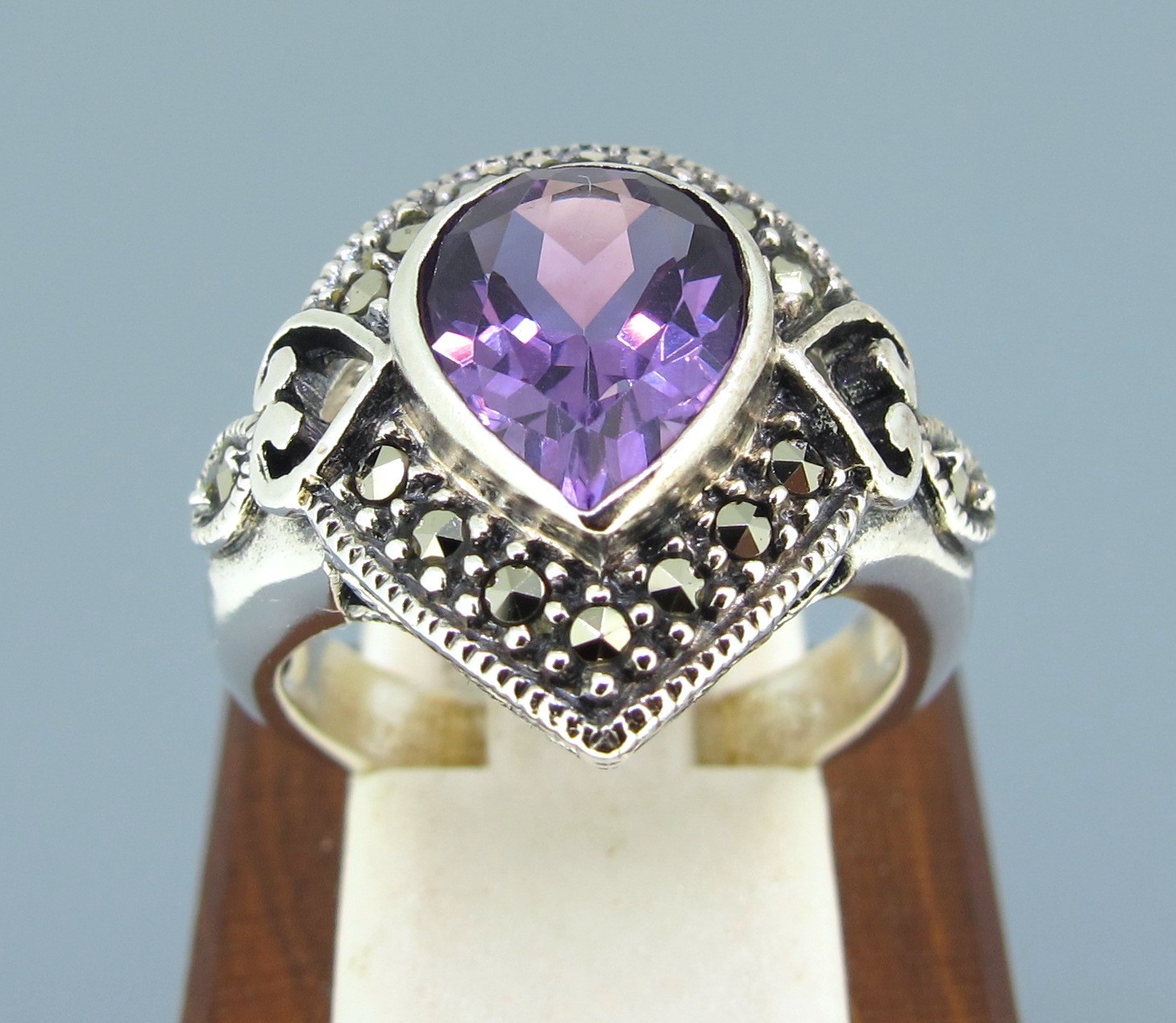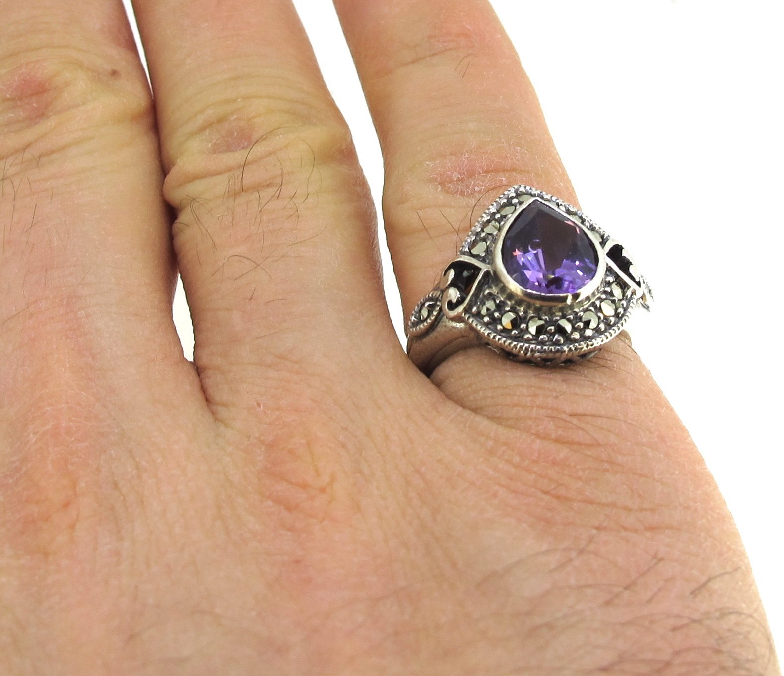 как выглядит Vintage Amethyst and Marcasite Sterling Silver Women Ring Size 7 фото