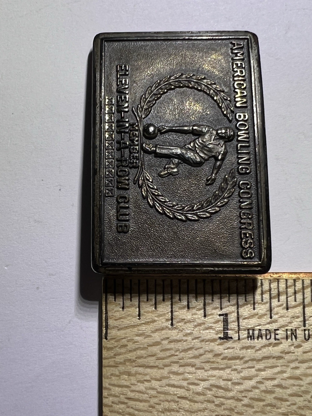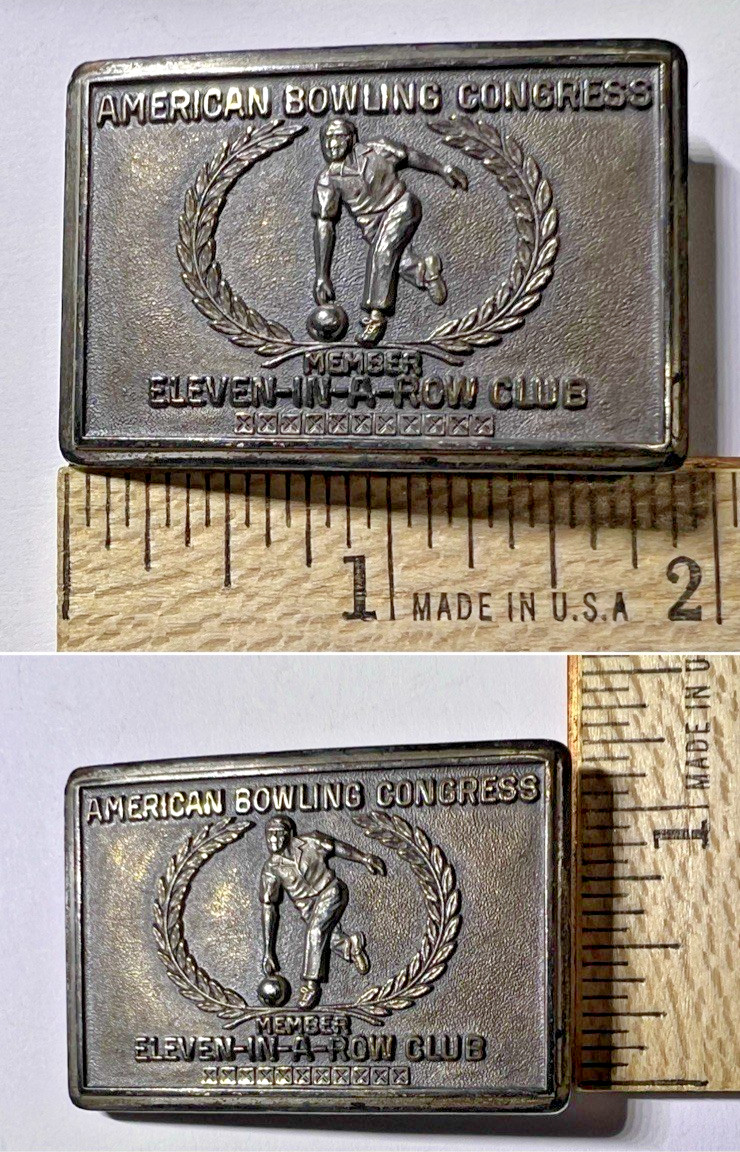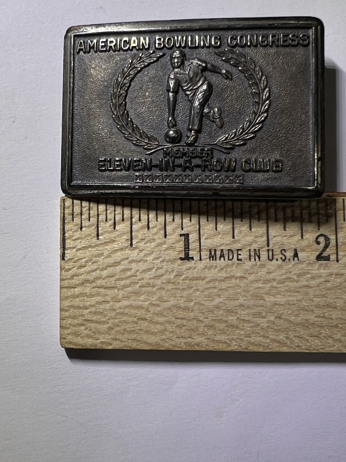 как выглядит 1965 American Bowling Congress Eleven In-A-Row Club Sterling Silver Belt Buckle фото