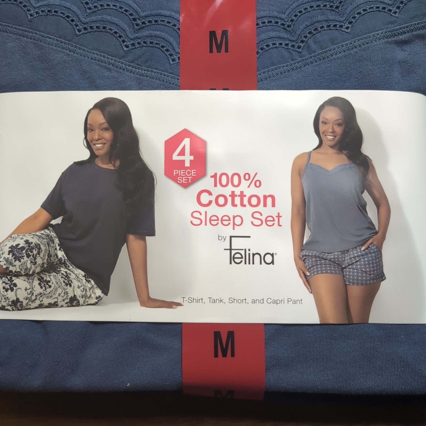 как выглядит Felina Womens 4-Piece 100 Cotton Sleep Set, Blue, Medium фото