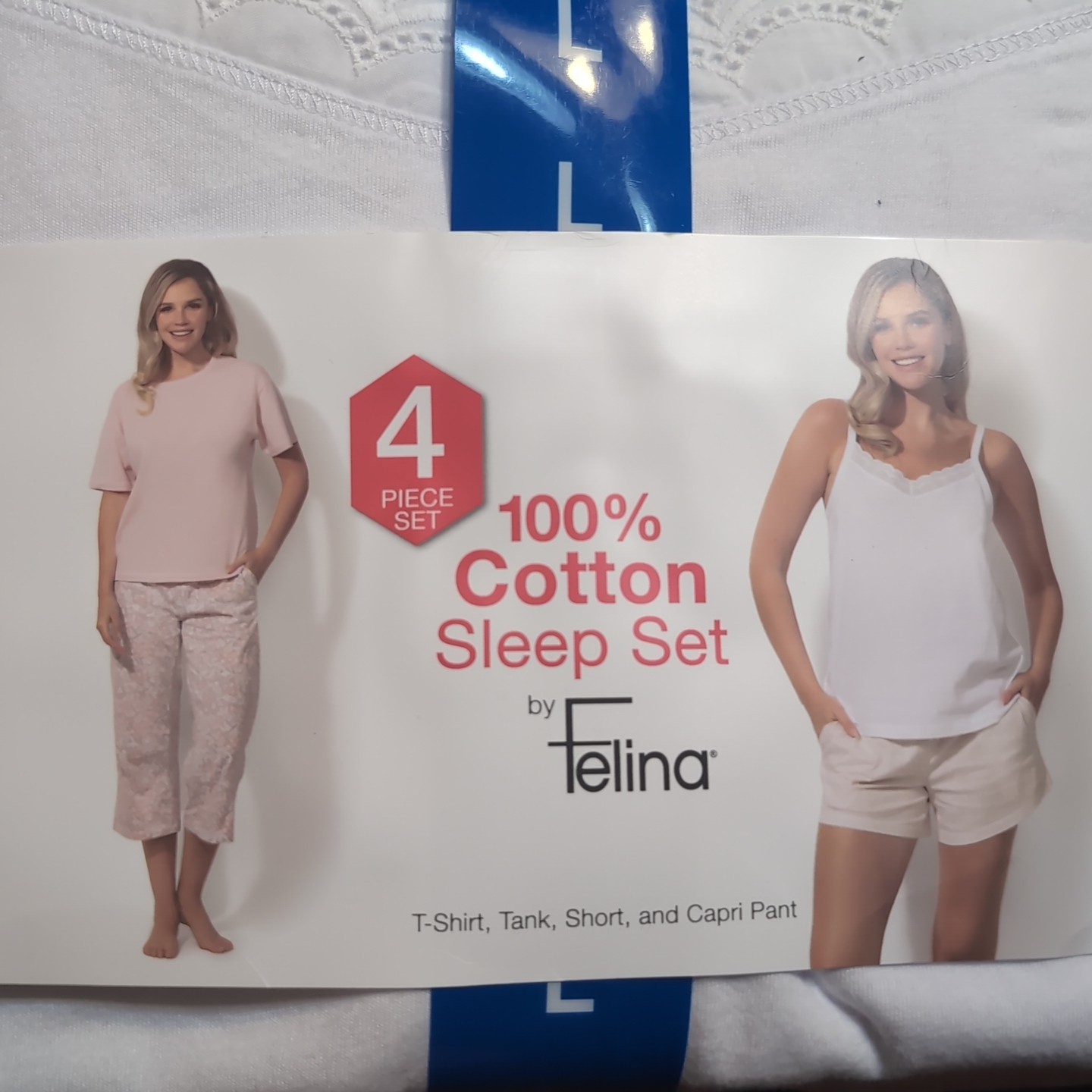 как выглядит Felina Womens 4-Piece 100 Cotton Sleep Set, Large фото