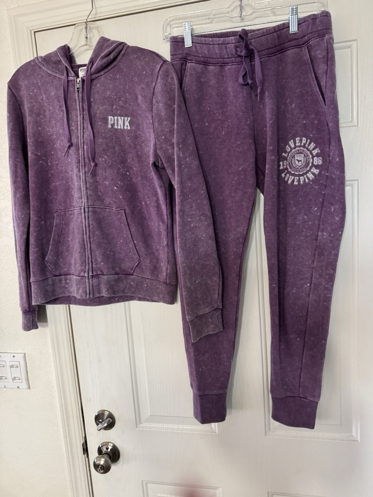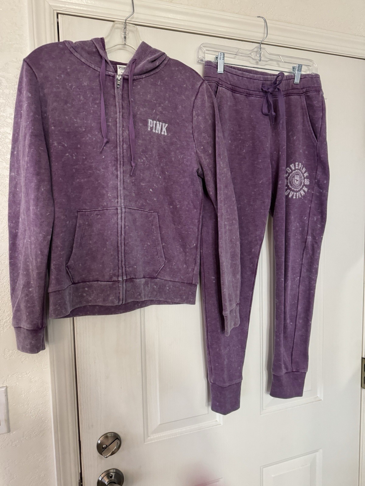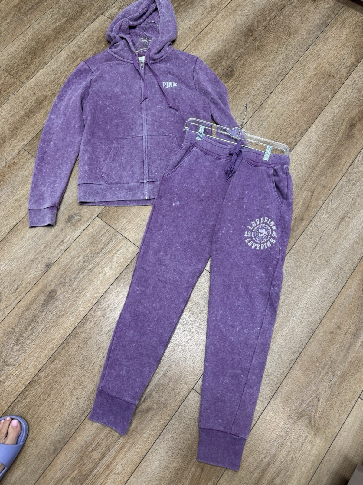 как выглядит PINK Victorias Secret Sweatsuit Set M Sweatshirt Sweatpants S PLUM stonewash фото