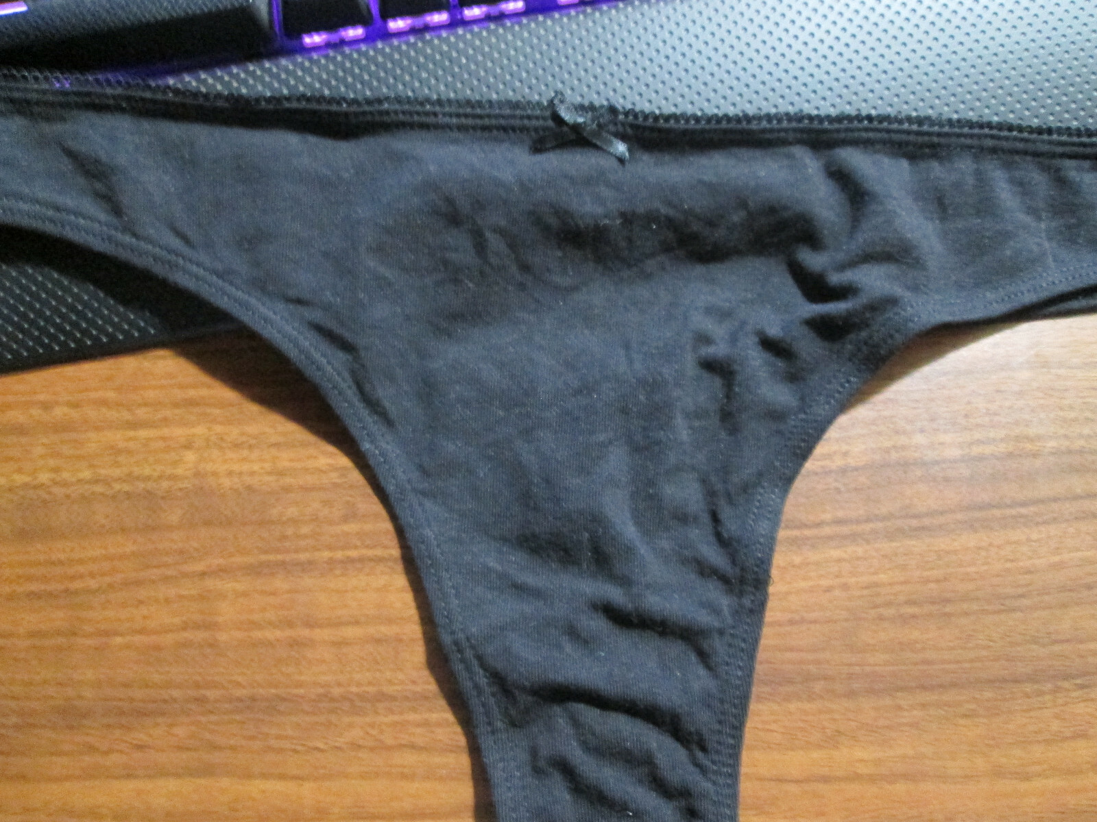 как выглядит 2 New 95 Cotton Thong Panties  Size L Set of Black Gray w/Black Edges фото