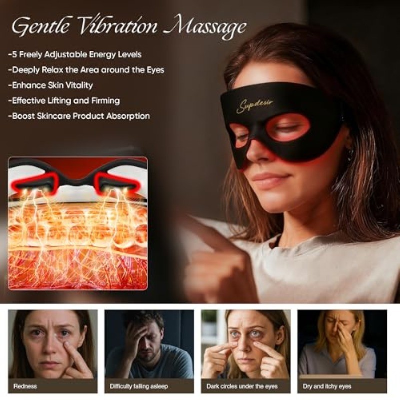 Red Light Therapy for Eyes, 8-in-1 LED Light Therapy 5-Level Gentle Vibration