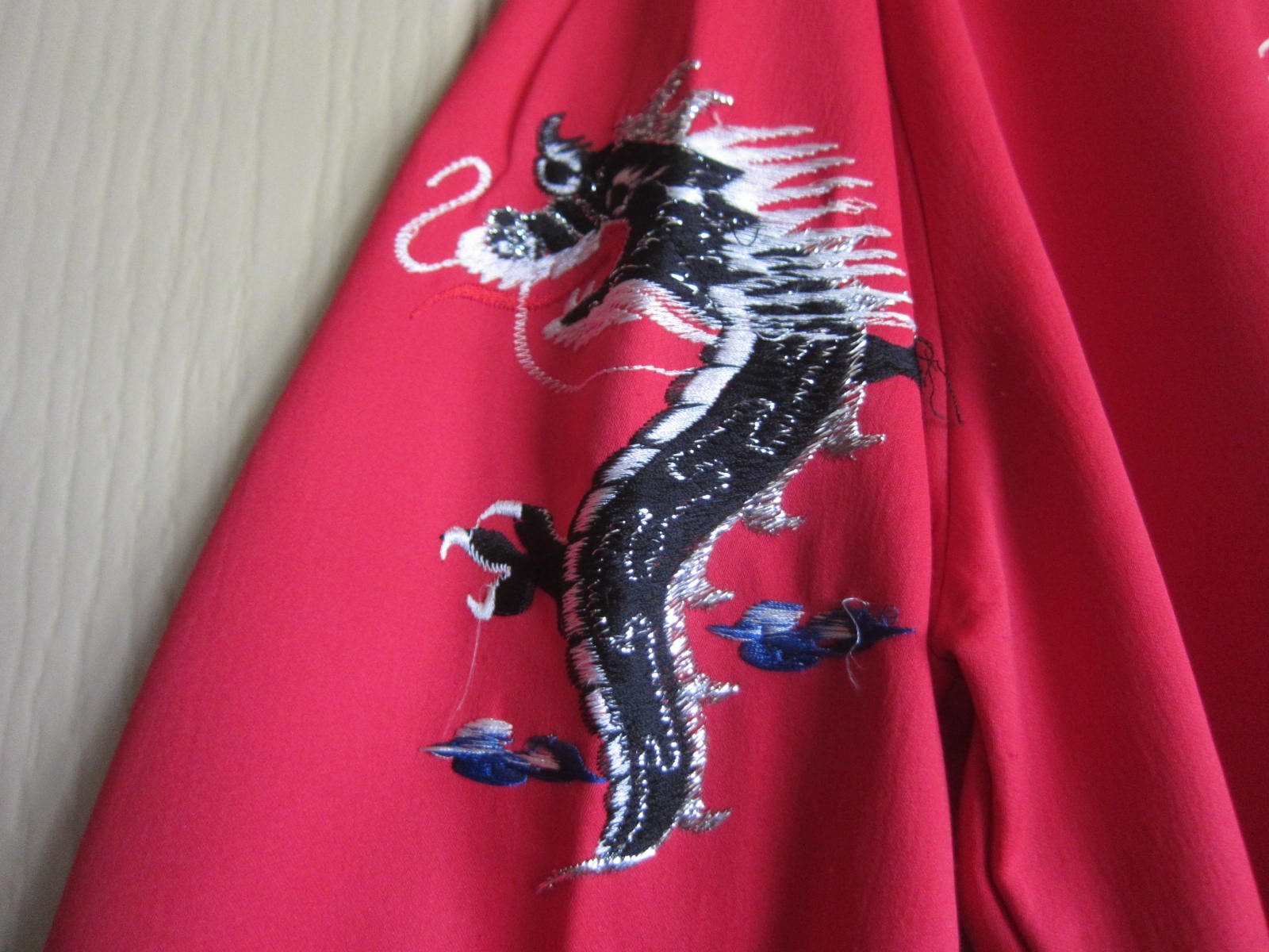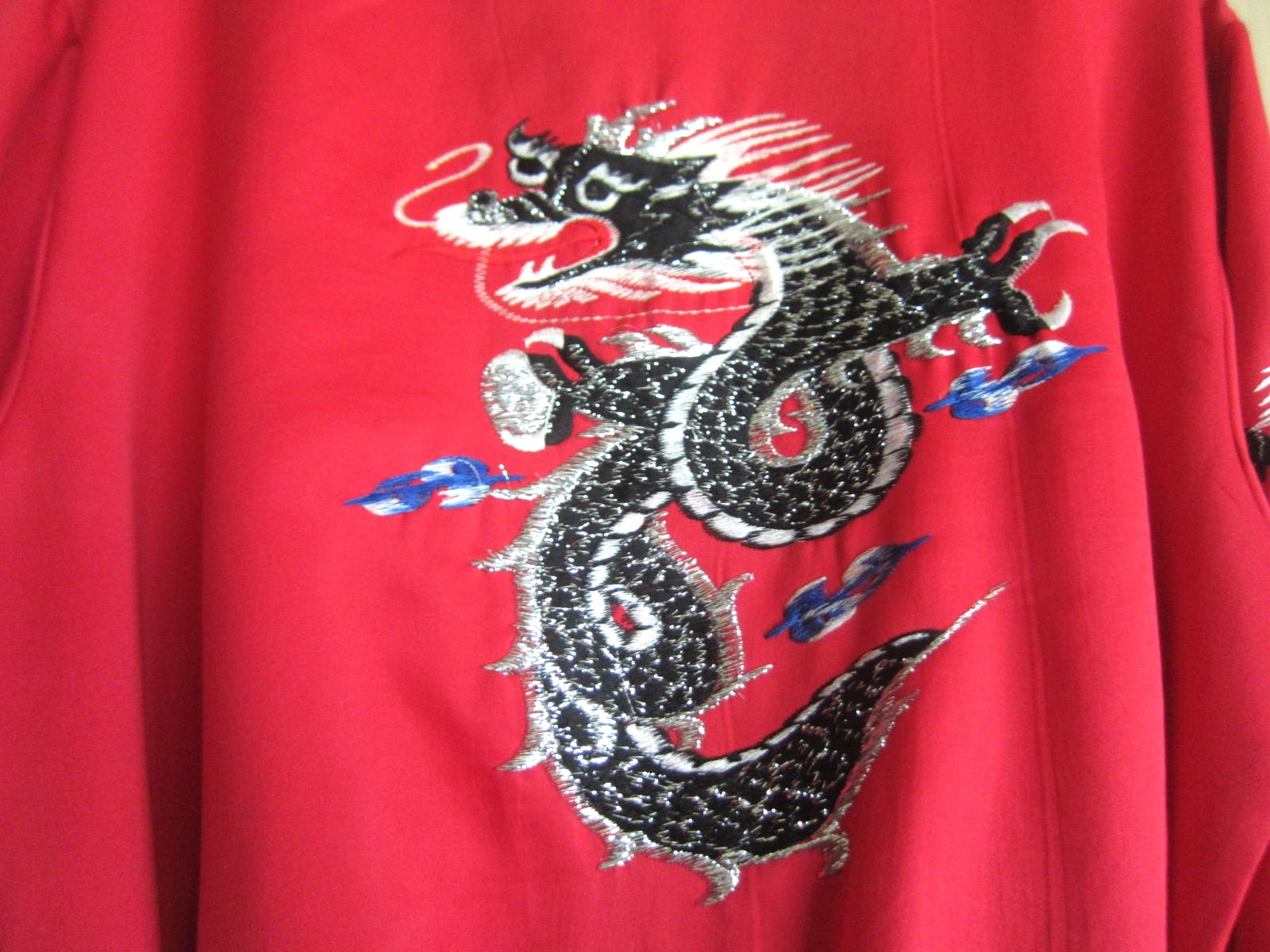 как выглядит Embroidered Dragon Kimono Style Robe Red and Black Unisex Adult Belted 45" Long фото