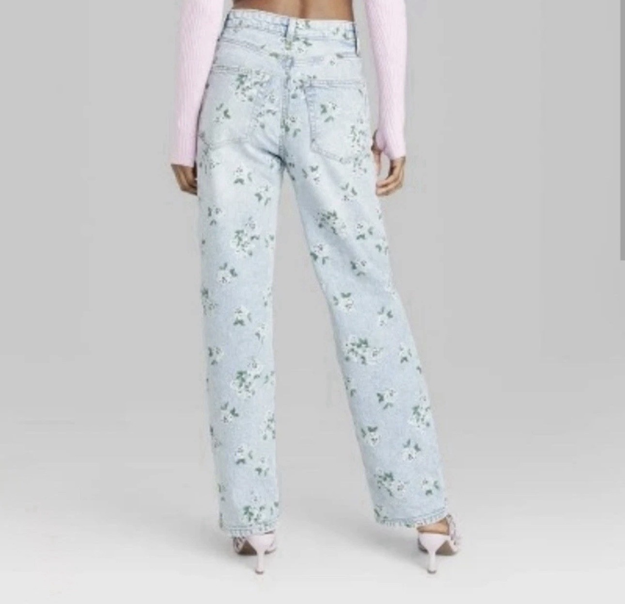 как выглядит Womens 90s Relaxed Straight Jeans - Wild Fable Light Blue Floral 00 фото