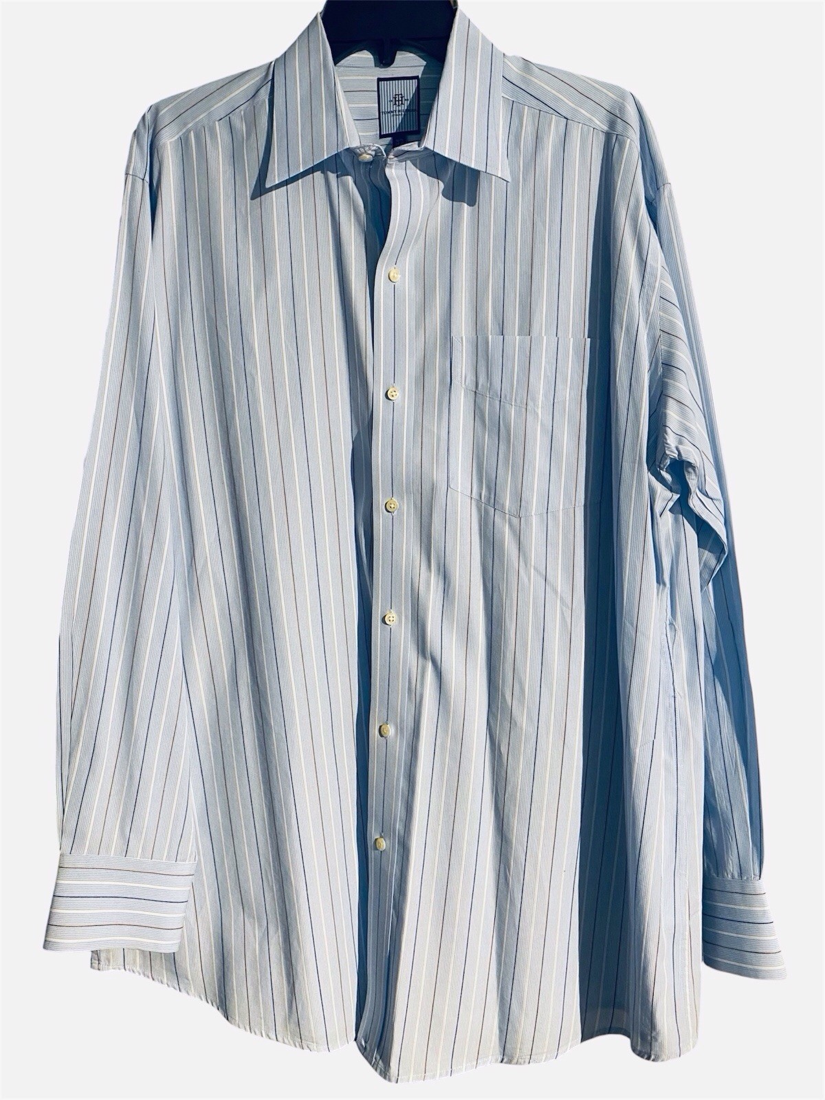 как выглядит Tommy Hilfiger Ithaca Men s Blue Striped Long Sleeve Dress Shirt Size L Classic фото