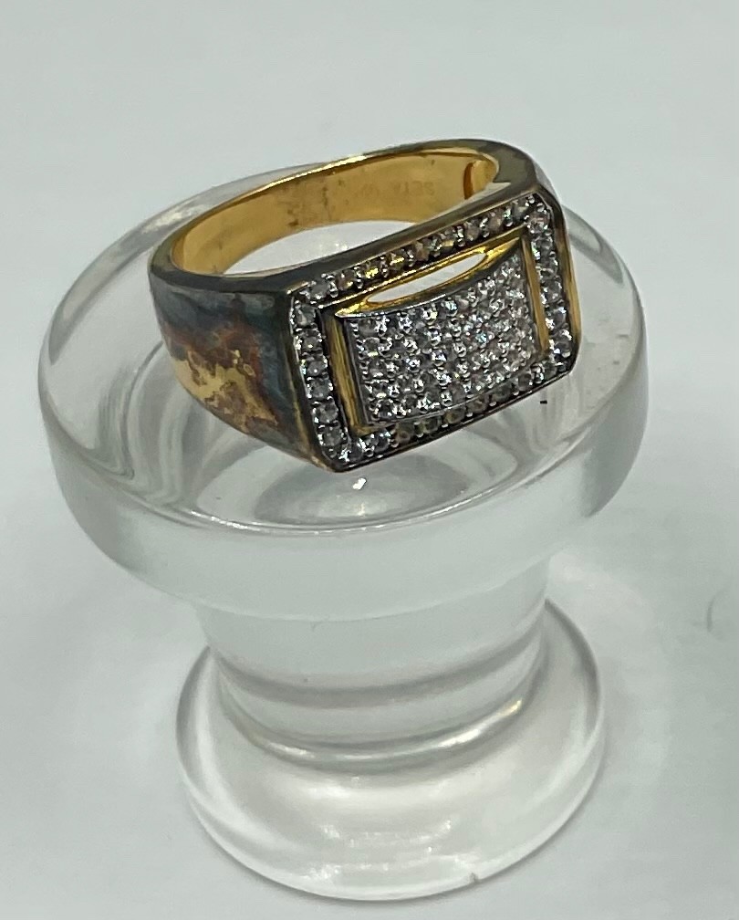 как выглядит SETA 925 STERLING SILVER GOLD VERMEIL CUBIC ZIRCONIA RING SIZE 9.75 фото