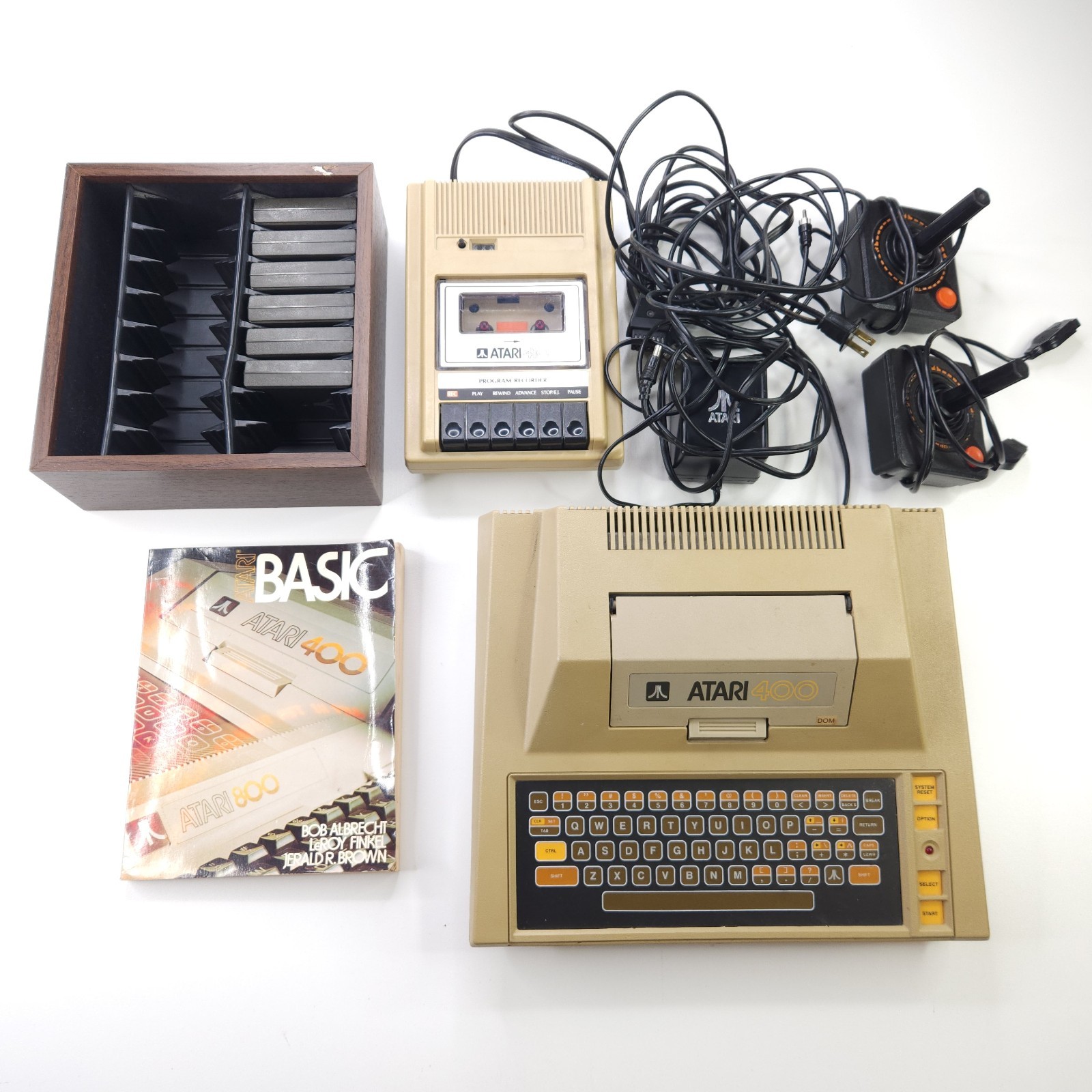 Atari 400 Computer 410 Program Recorder Joysticks Cables Basic Manual Games Lot