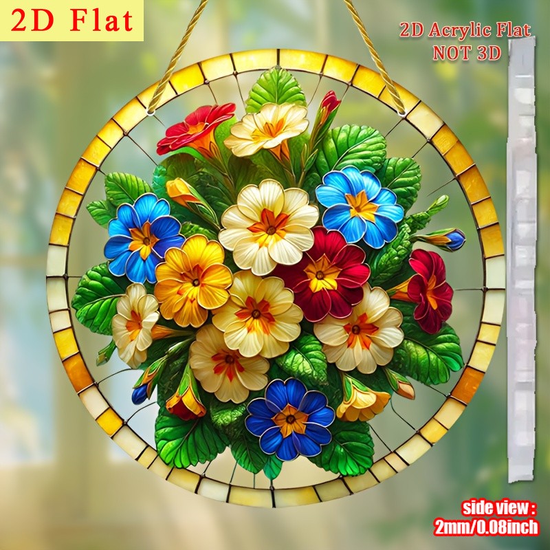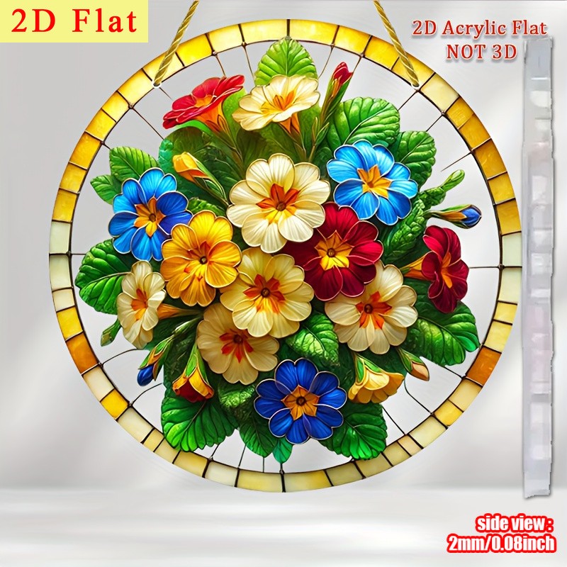 Spring Floral Acrylic Suncatcher Round Window Ornament Hanging Decor for Garden