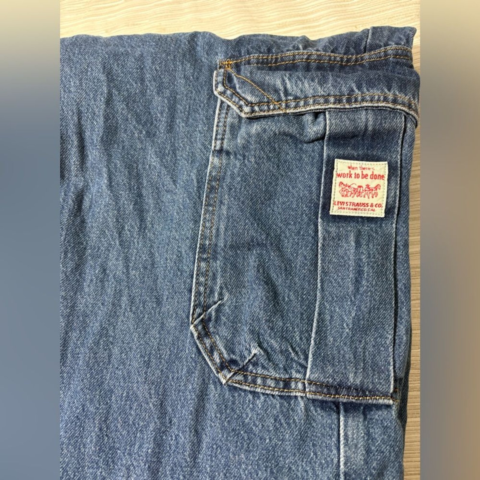LEVIS 34x32 adult baggy Blue Denim Cargo Pants excellent condition