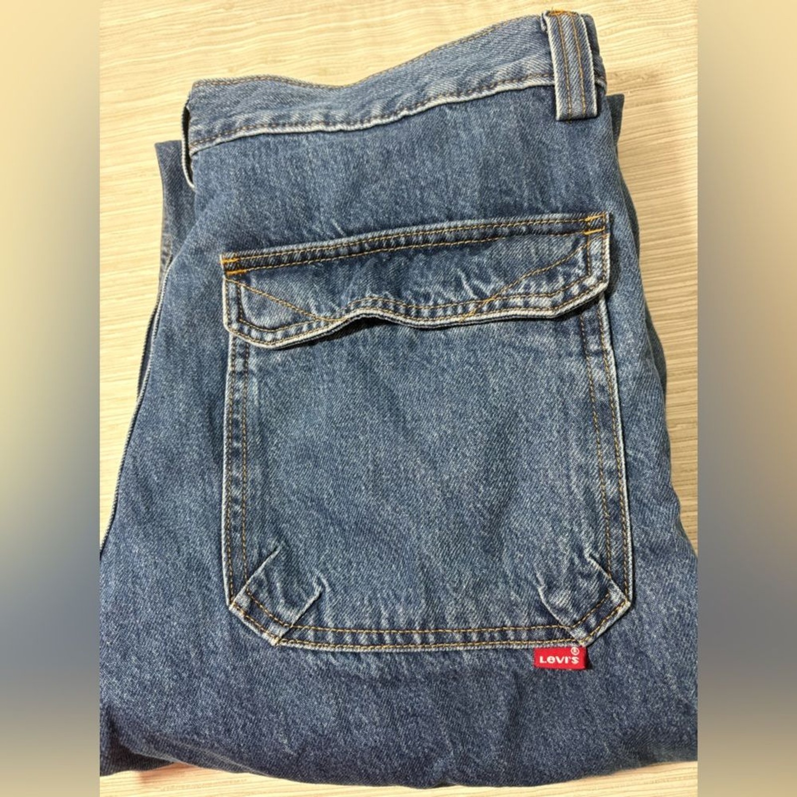 как выглядит LEVIS 34x32  adult baggy Blue Denim Cargo Pants excellent condition фото