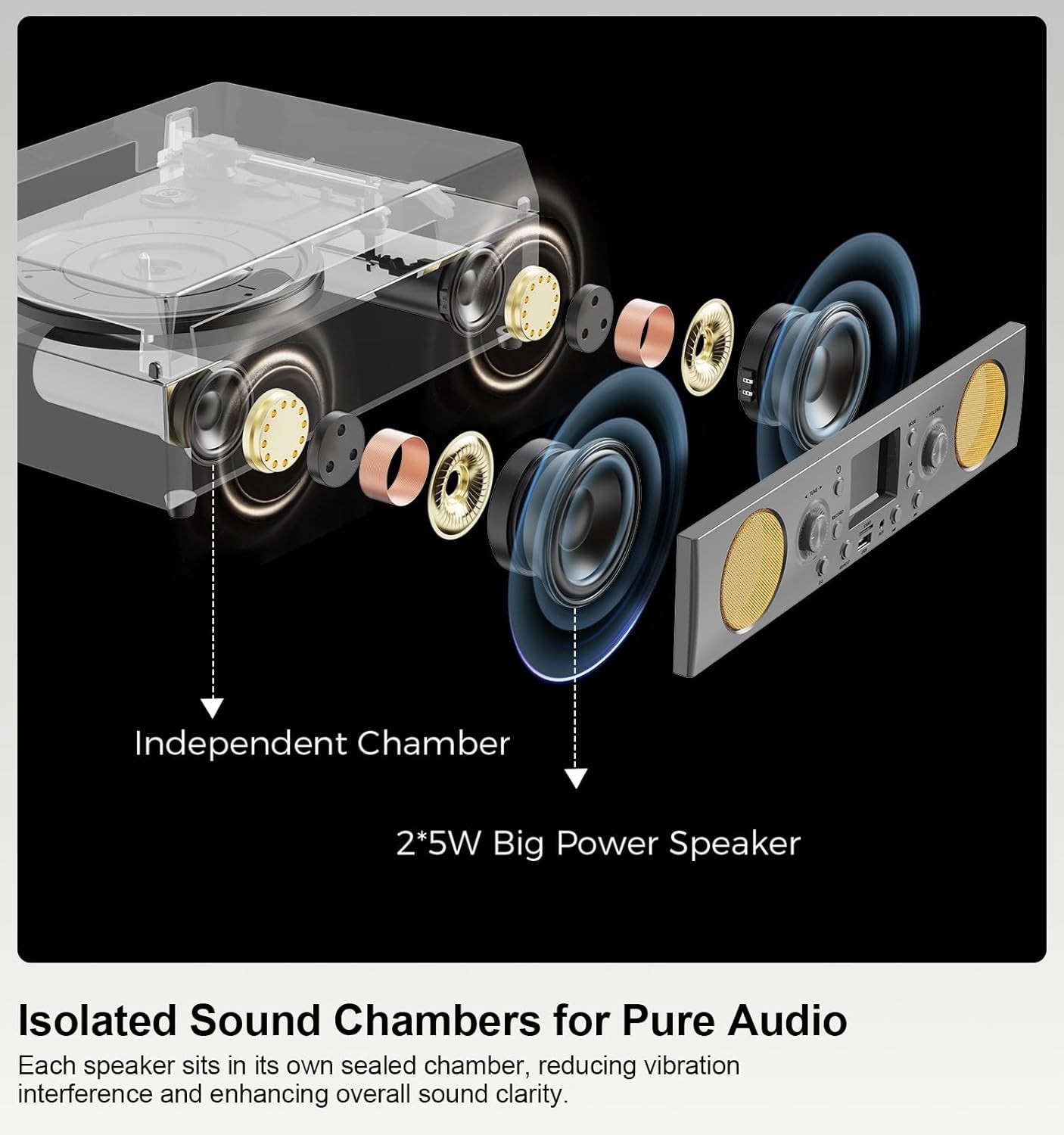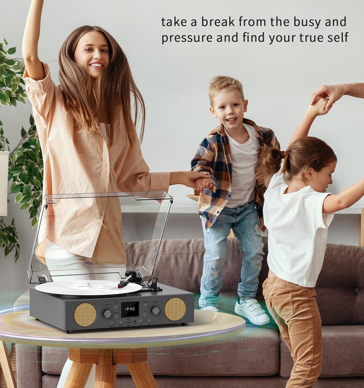 как выглядит 3-Speed Belt-Driven Record Player with Built-in Speakers, Bluetooth Turntable wi фото