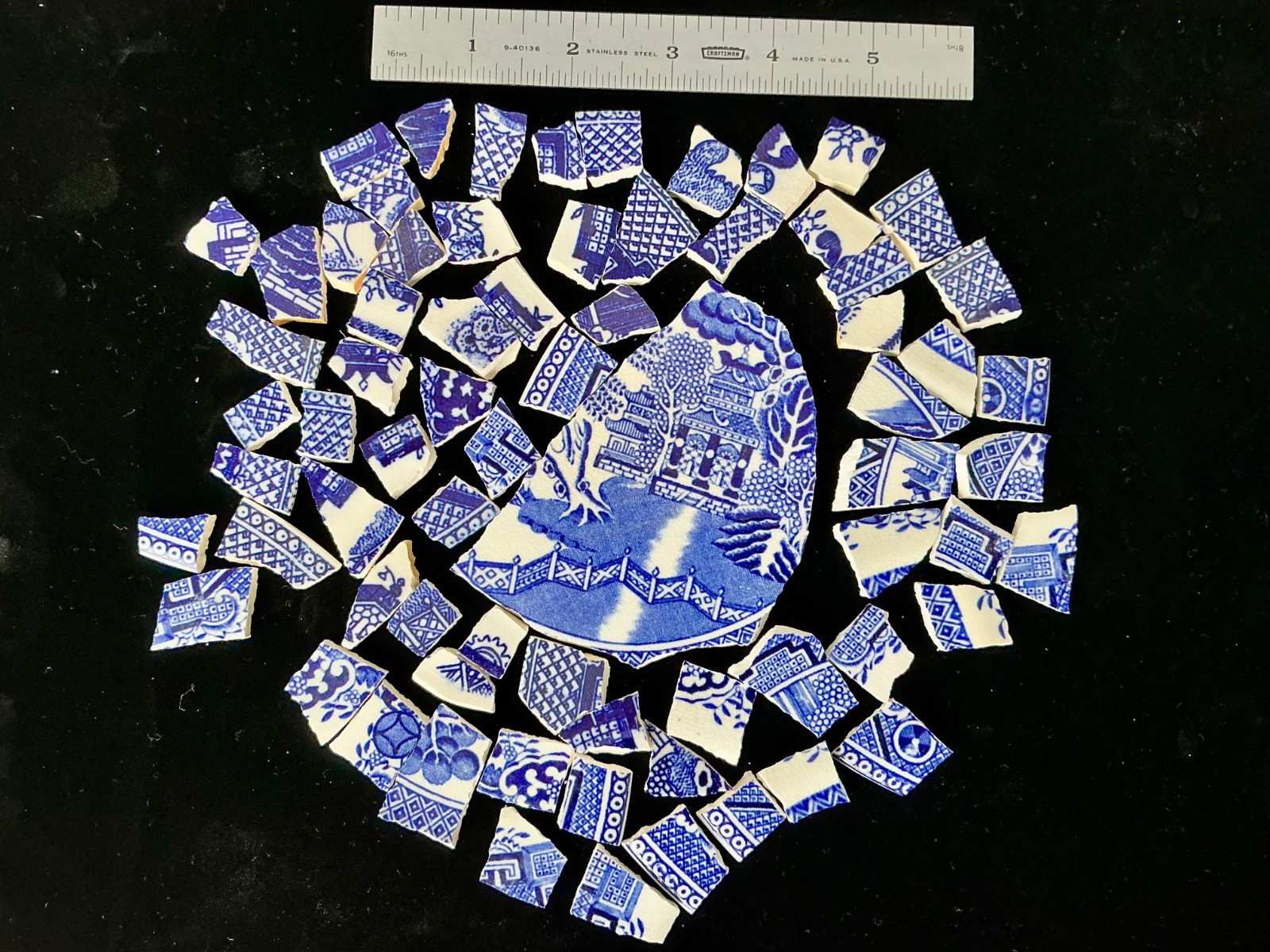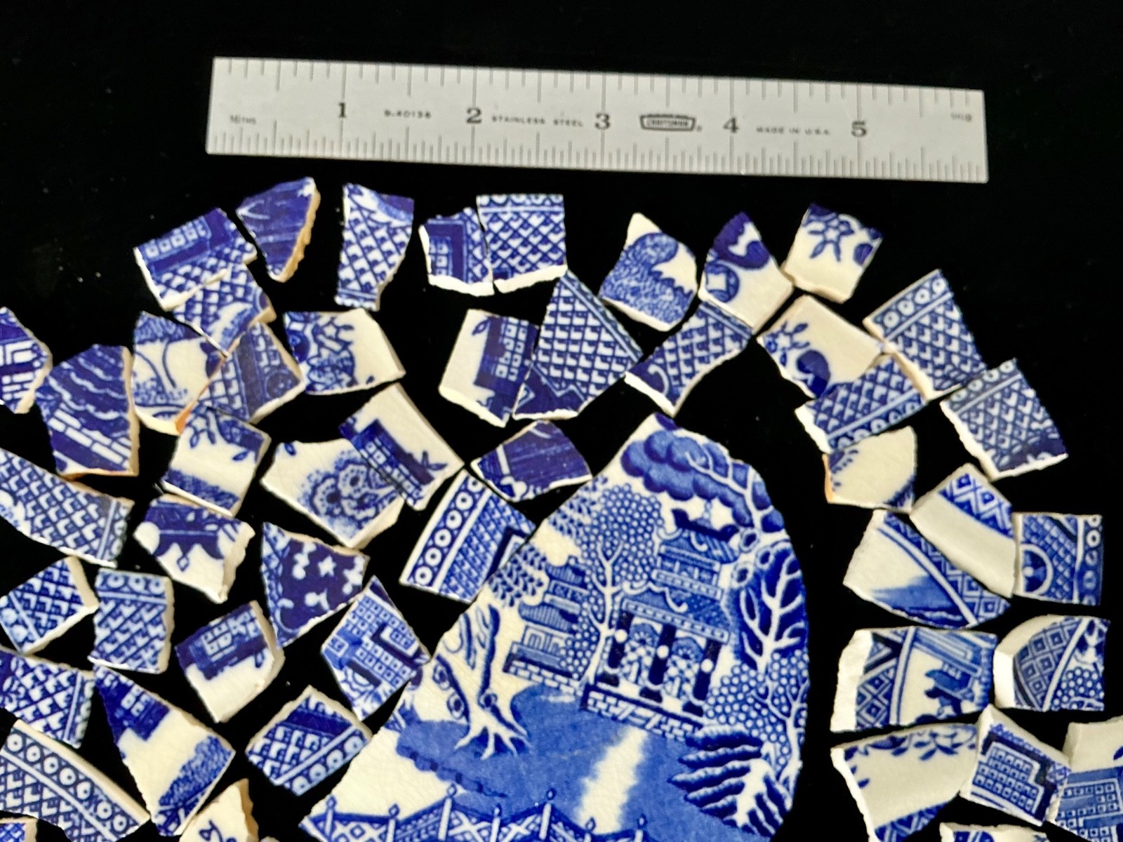 Broken China Mosaic Tiles Blue White BLUE WILLOW Pagoda Focal 65 Pieces