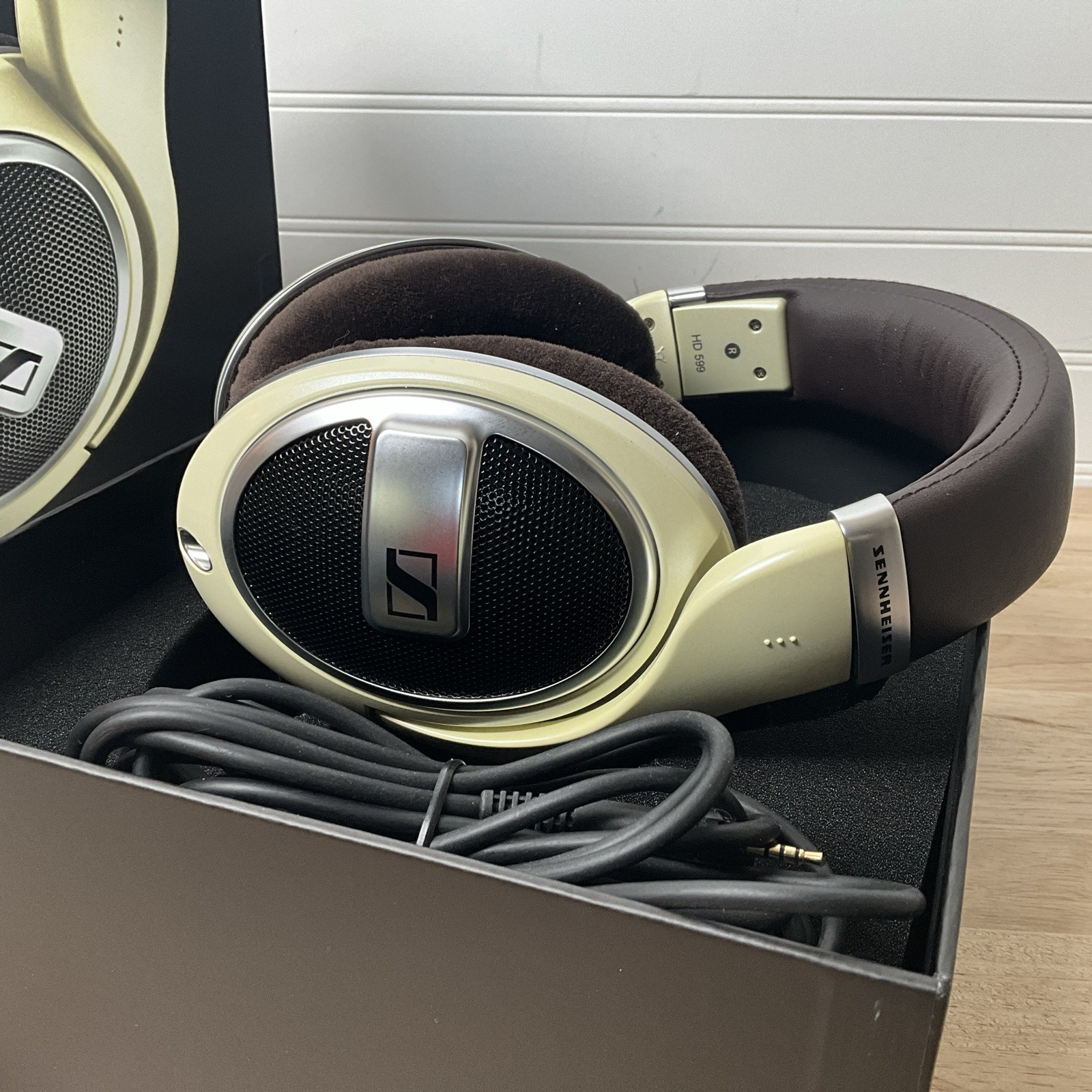 как выглядит Sennheiser HD 599 Headband Headphones - Ivory / Brown фото