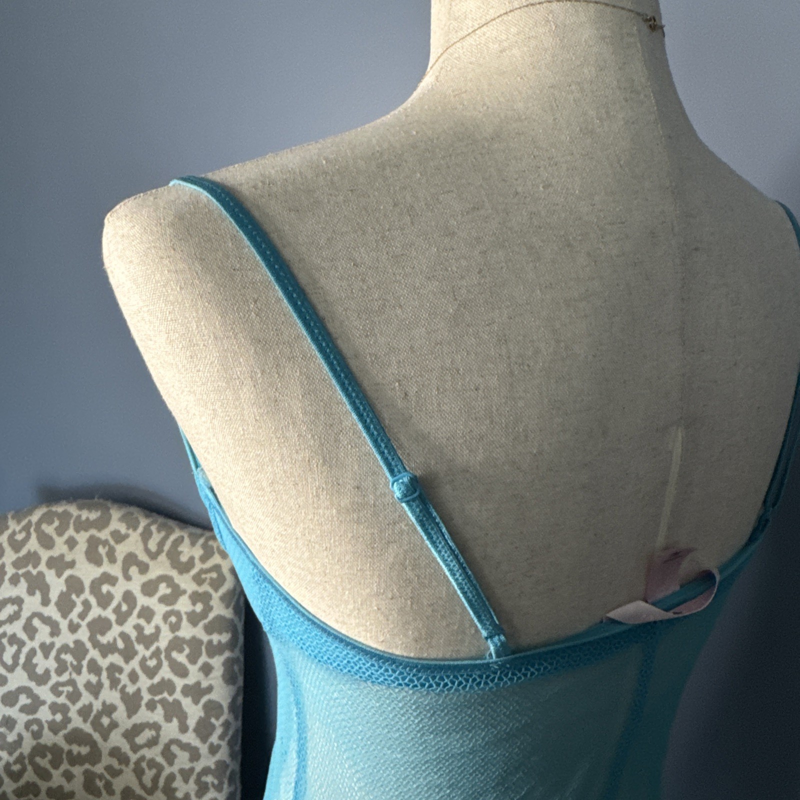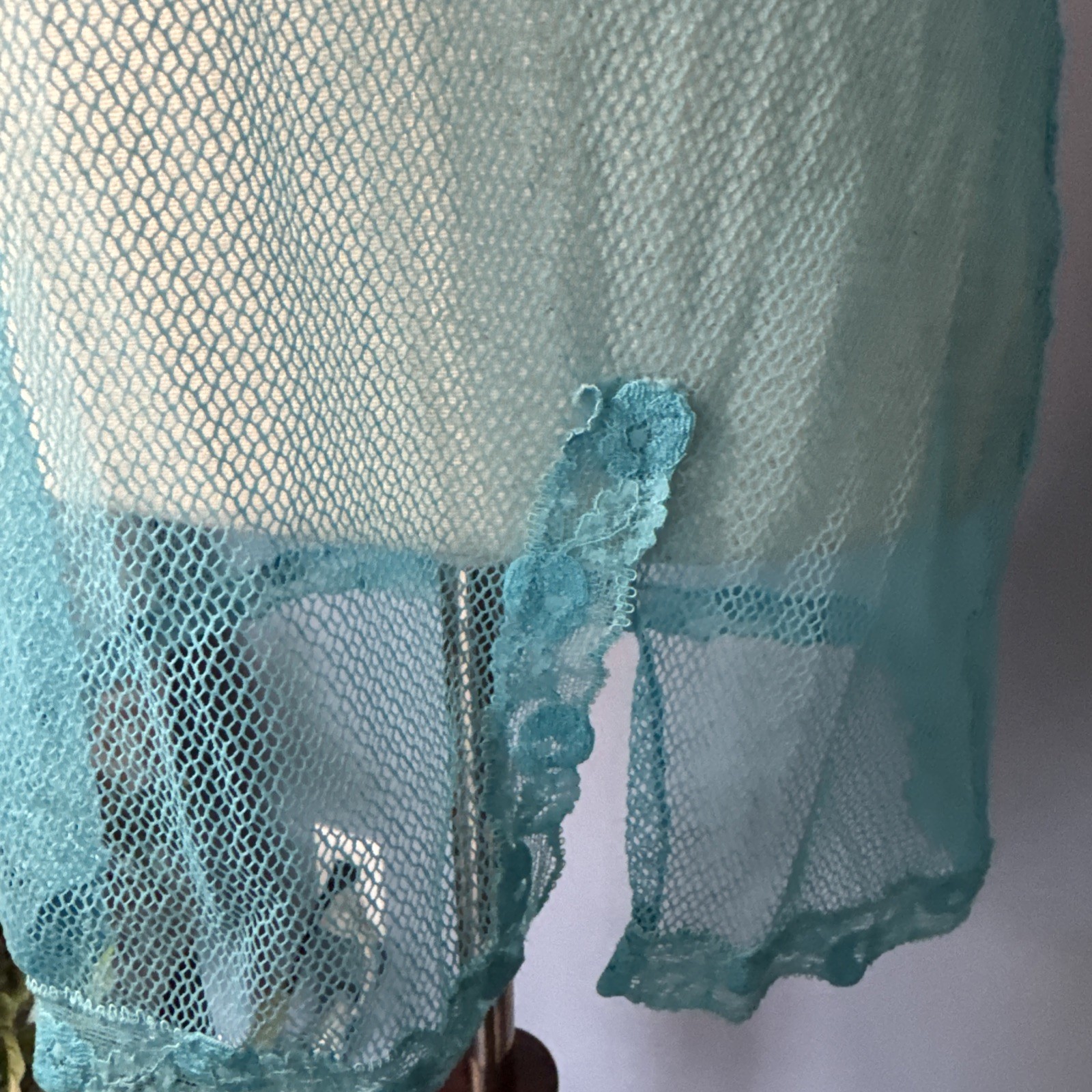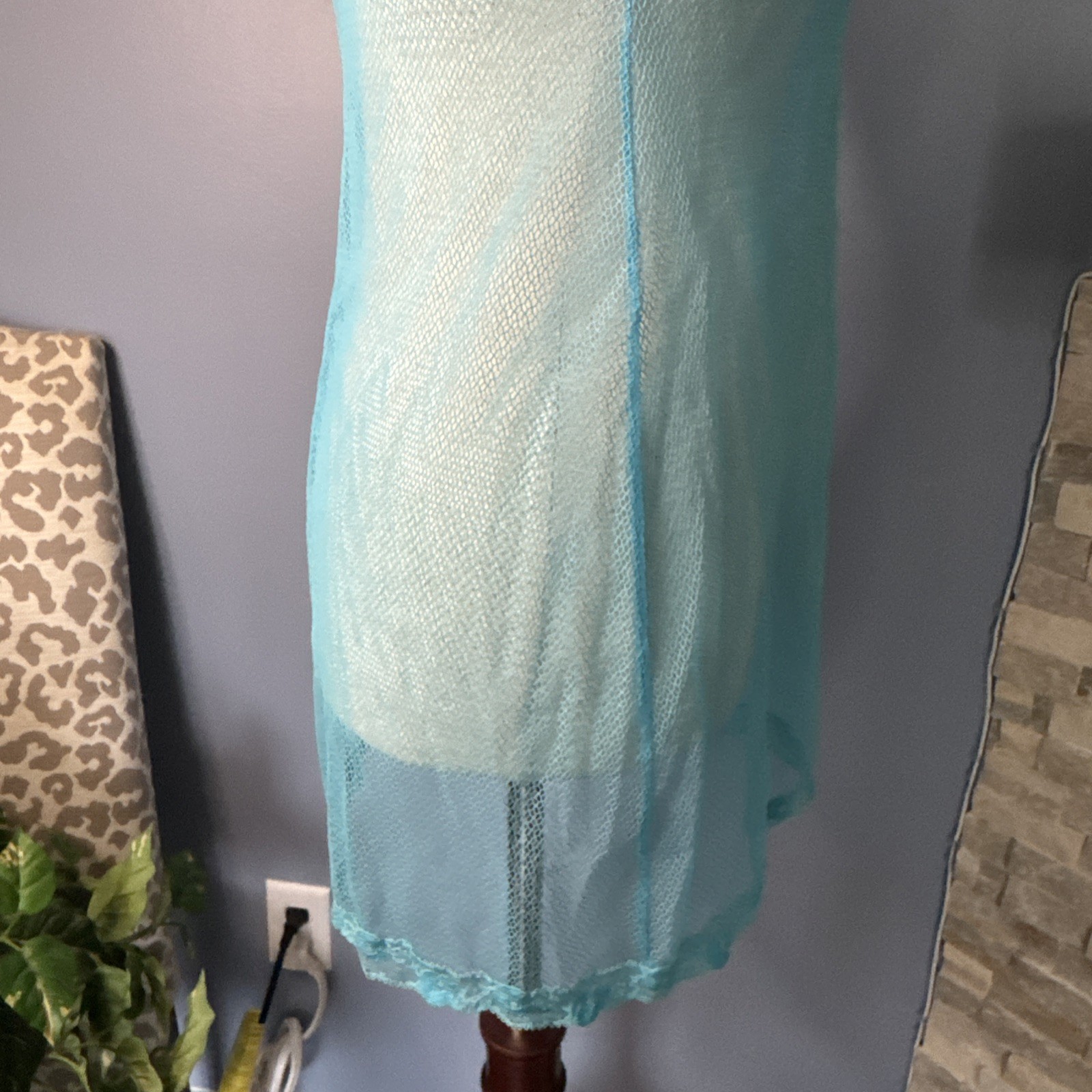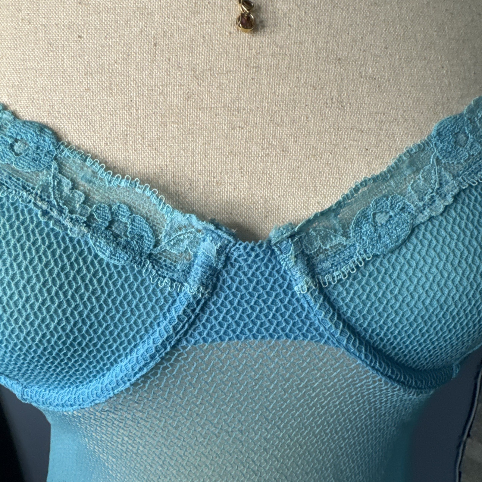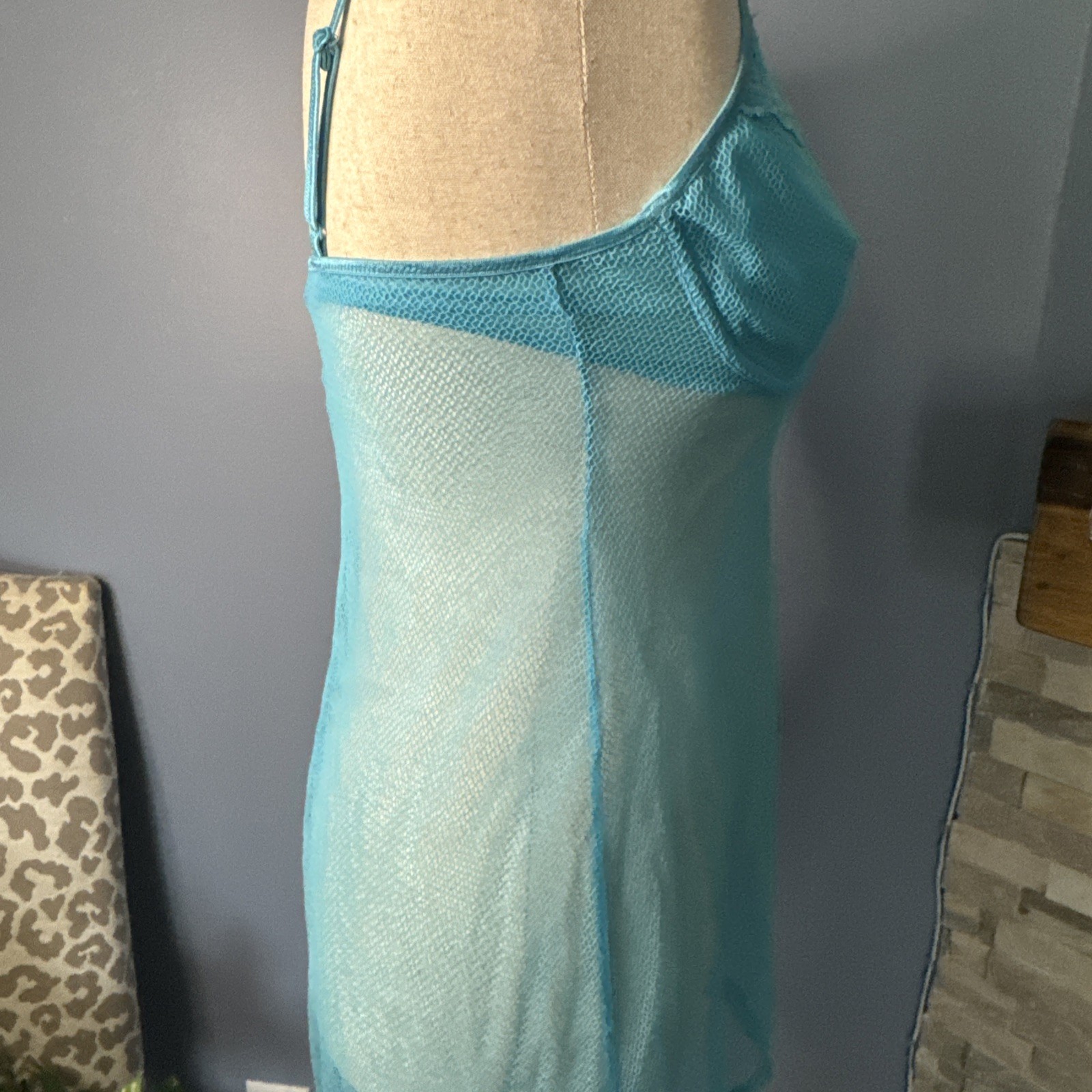 Vintage Victoria s Secret 36C Sheer Mesh Chemise Babydoll Slip Y2K Blue