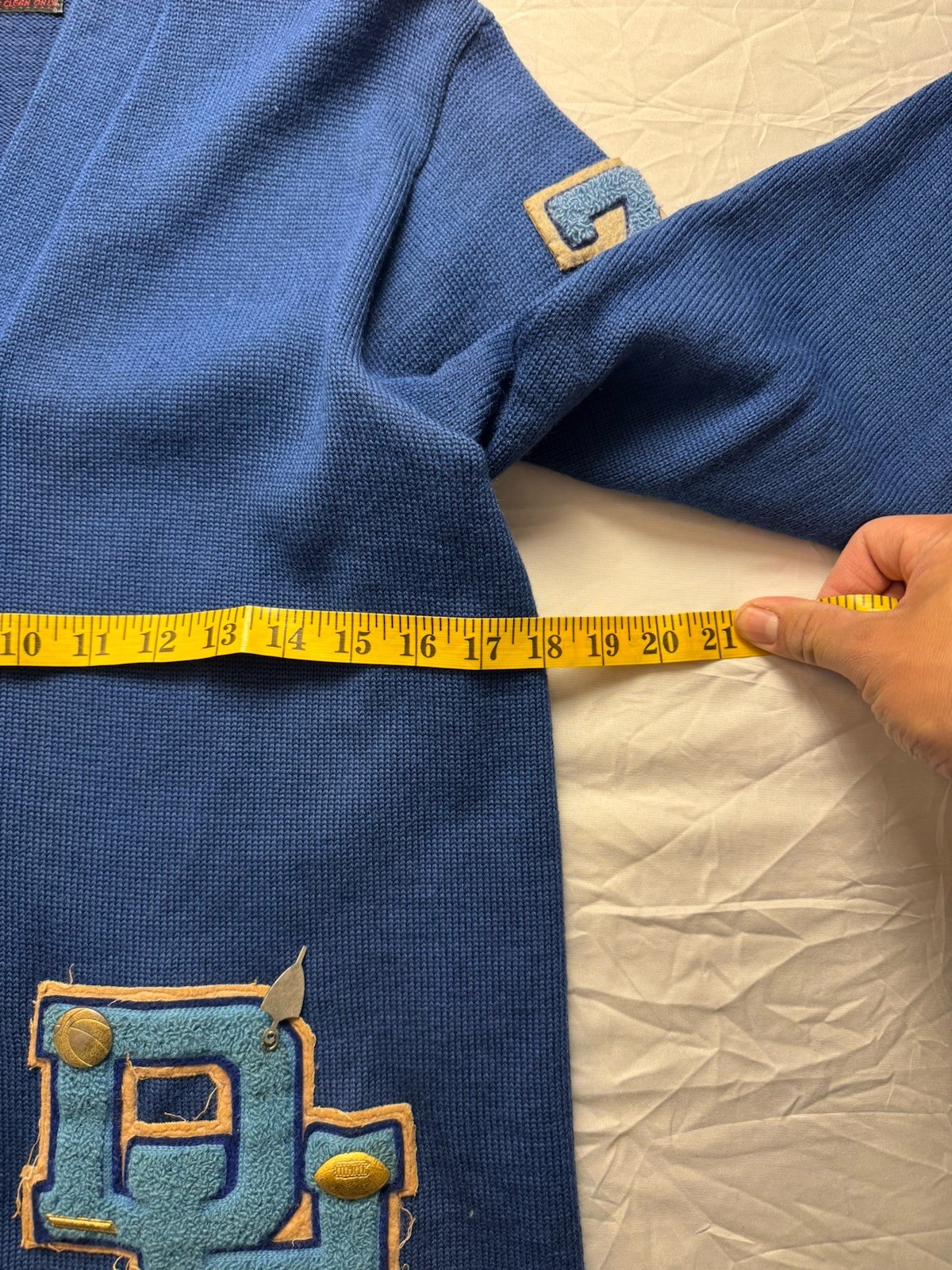 как выглядит VTG 50s High School Varsity Wool Cardigan Letterman Sweater W Patches фото