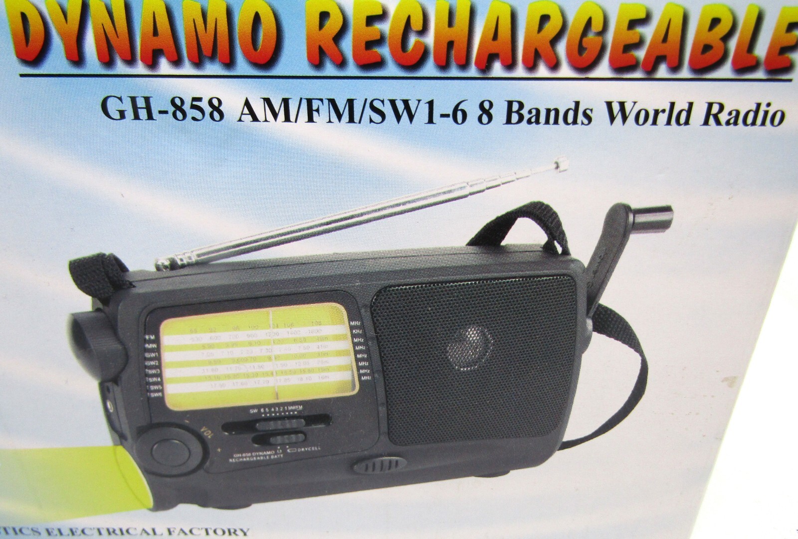 Dynamo Rechargeable GH- 858 AM/FM/SW 1-6 8 Band WORLD RADIO NEW wBOX Crank radio
