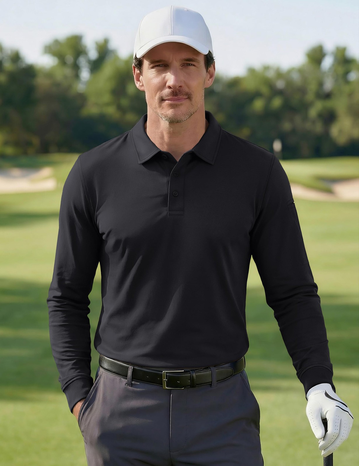 как выглядит Mens Long Sleeve Polo Shirts Quick Dry Performance Breathable Casual Work Golf T фото