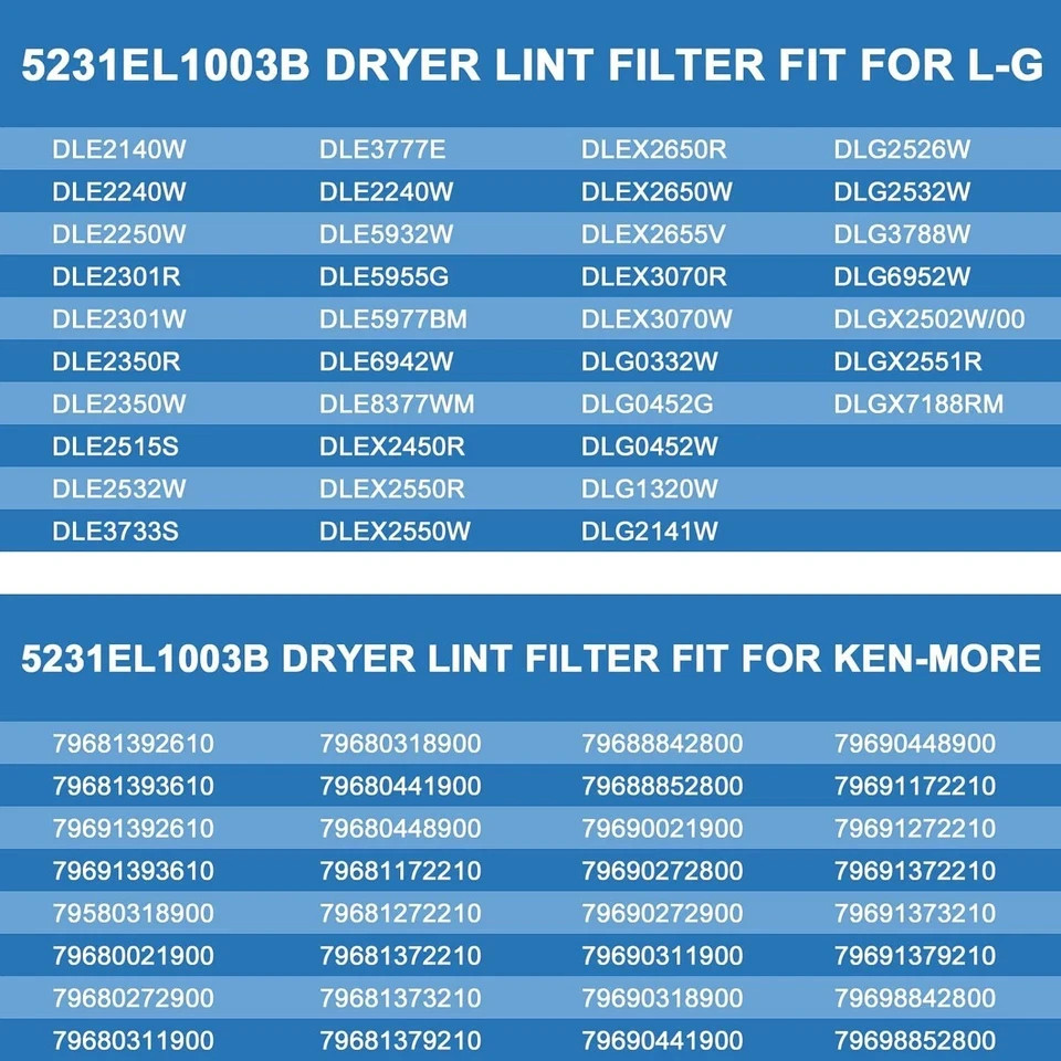 5231EL1003B Dryer Lint Filter Assembly with Felt Rim Seal Brush for LG Kenmore