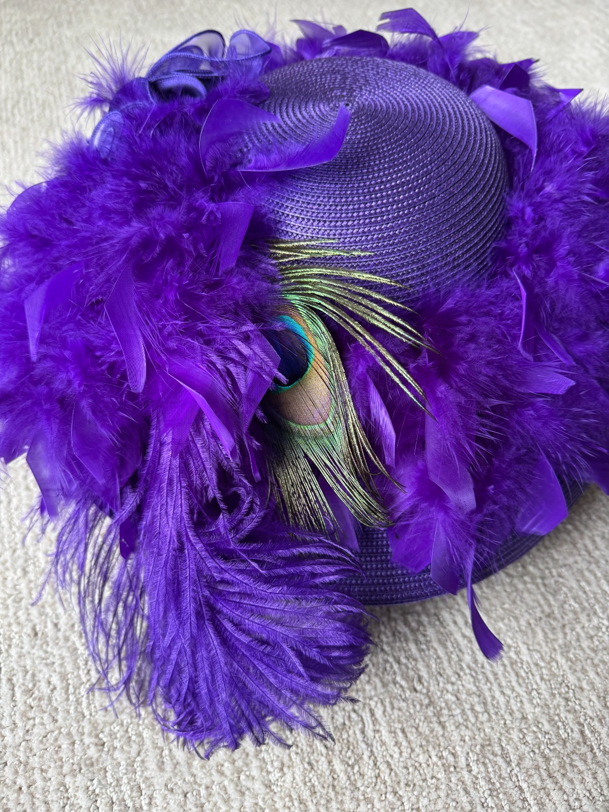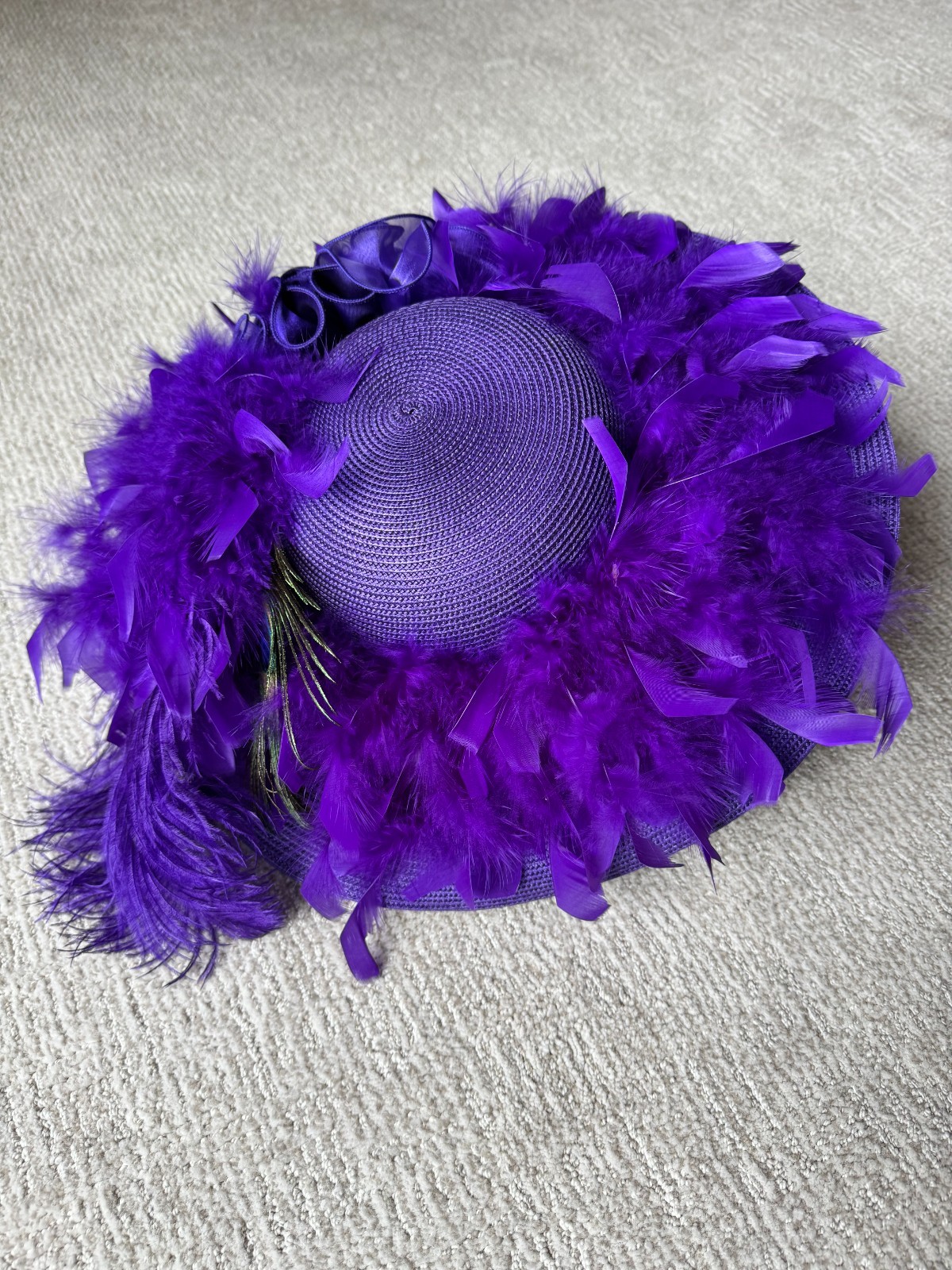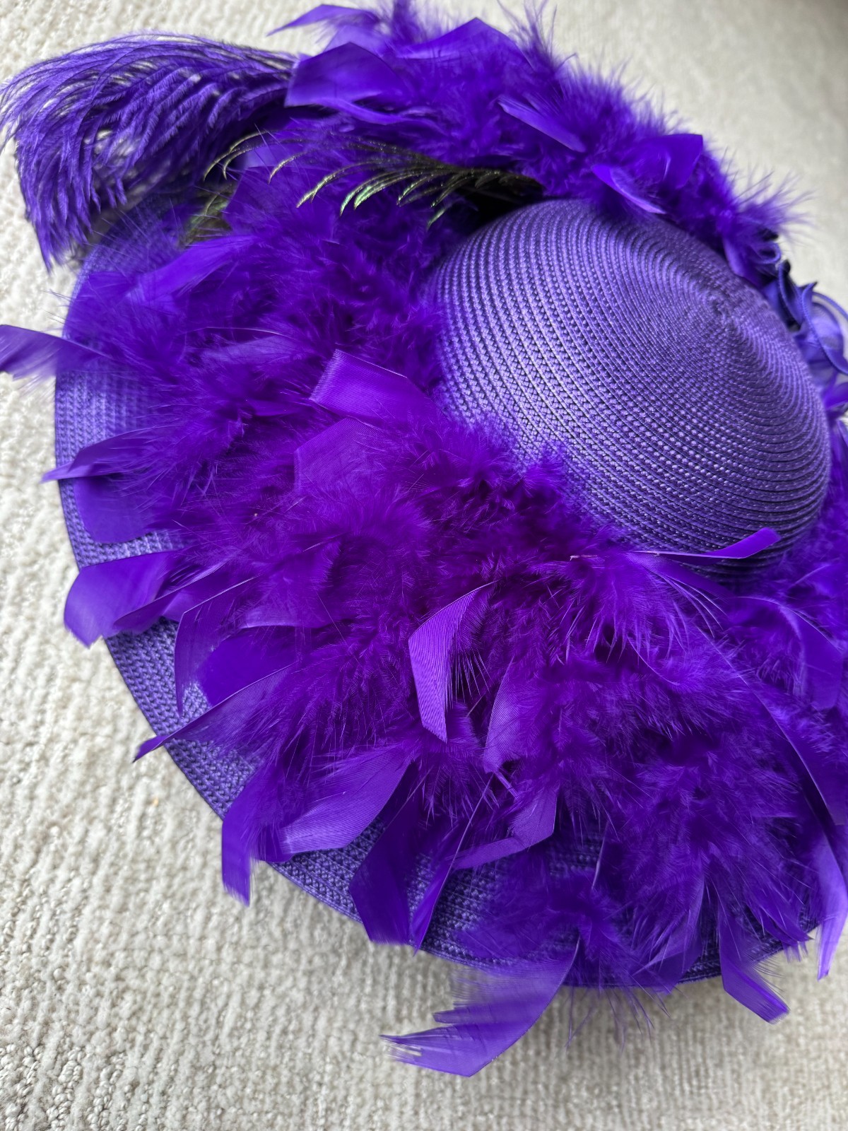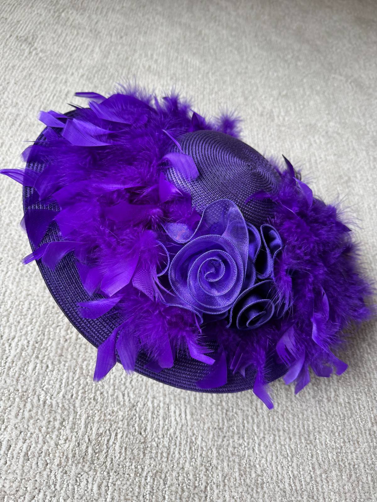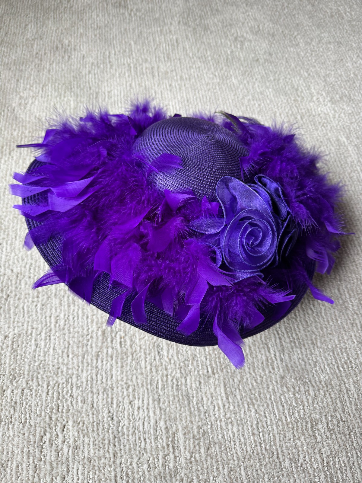 Wide Brim Kentucky Derby Church Dress Hat Purple w/ Feathers EXCELLENT CONDITION