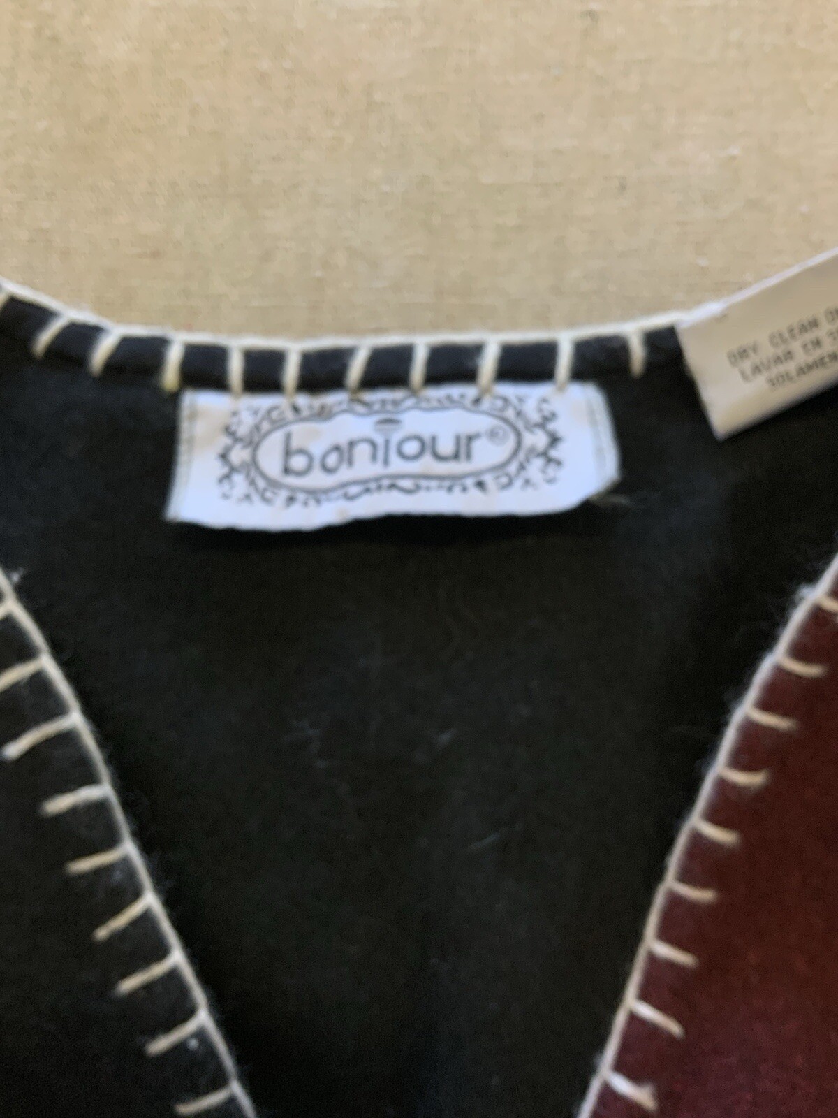 VINTAGE 80 s Bonjour wool Women s Medium colorful medallion embroidered vest