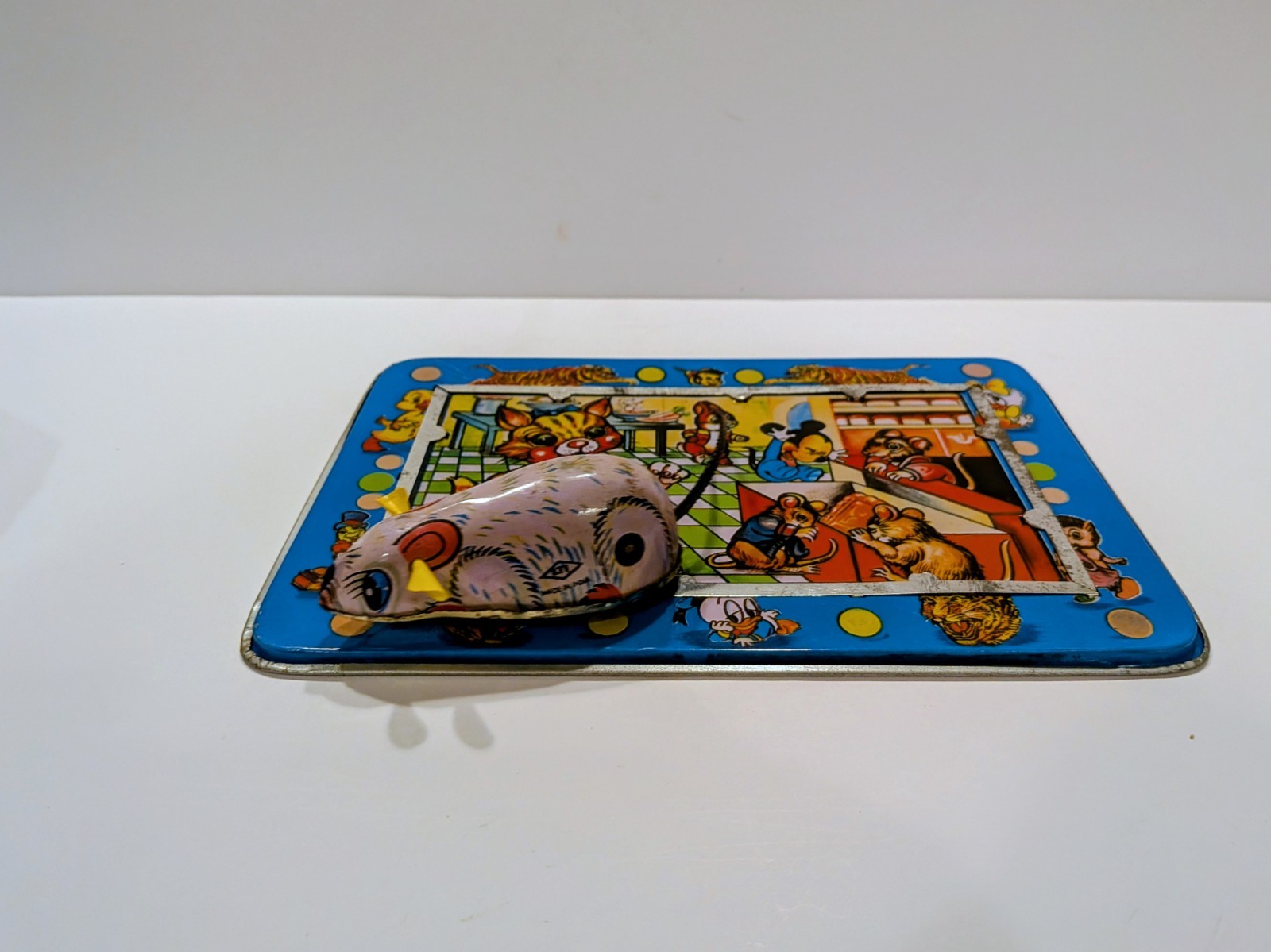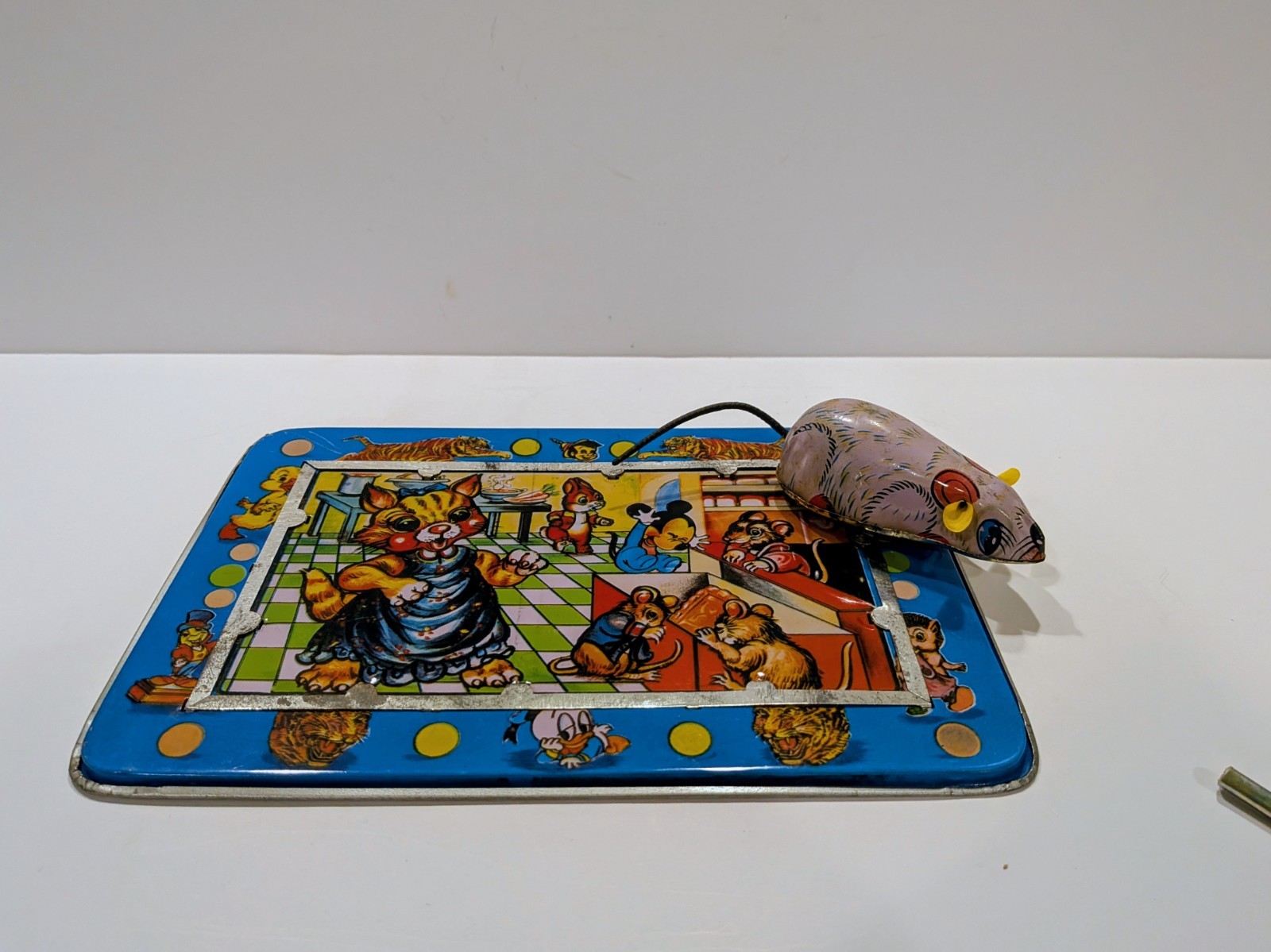 Vintage Mechanical Lucky Mouse Wind-up Tin Litho Toy Game Made In India WORKING