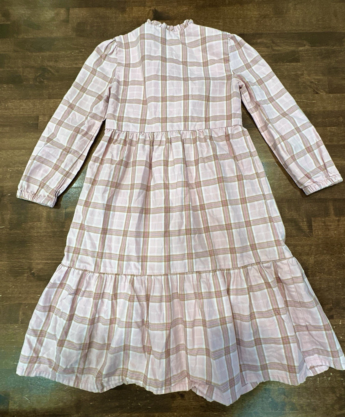 как выглядит Hope Henry Girls Sz 6 Tiered Midi Dress Organic Cotton Soft Pink Button Plaid фото