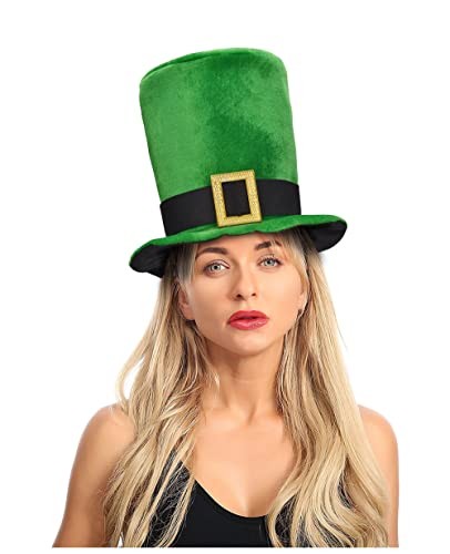 Yilistore St Patrick's Day Green Top Hat,Velvet Green Shamrock Hat,St. Green B