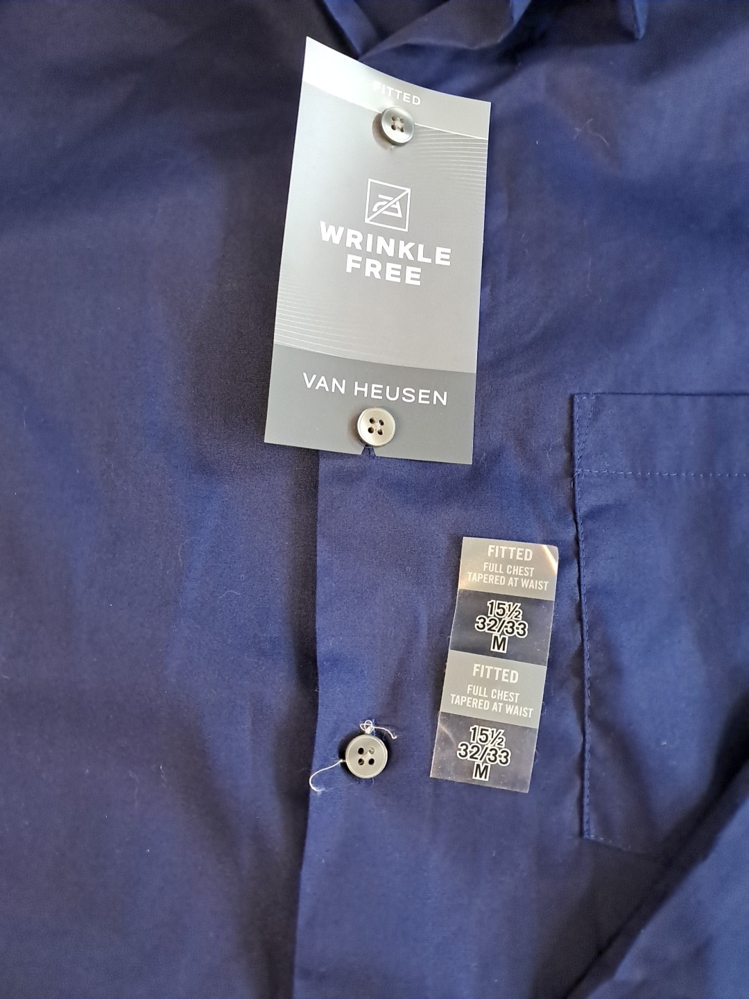 как выглядит Van Heusen Dress Shirt Mens Medium Blue Long Sleeve Fitted фото