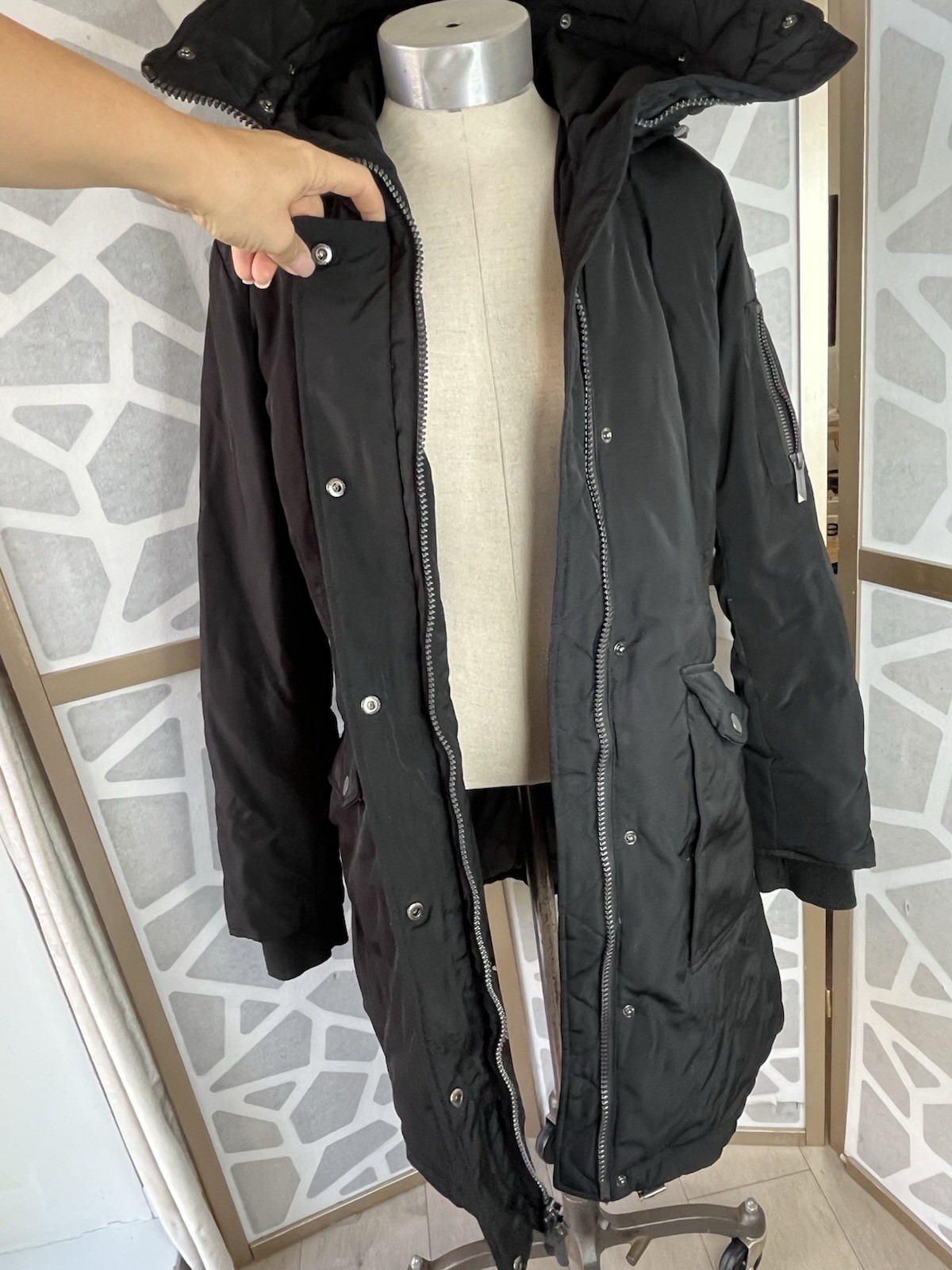 как выглядит BCBGMaxazria Bcbg Mazazria PARKA Puffer JACKET COAT SZ M BLACK FILLING DOWN фото