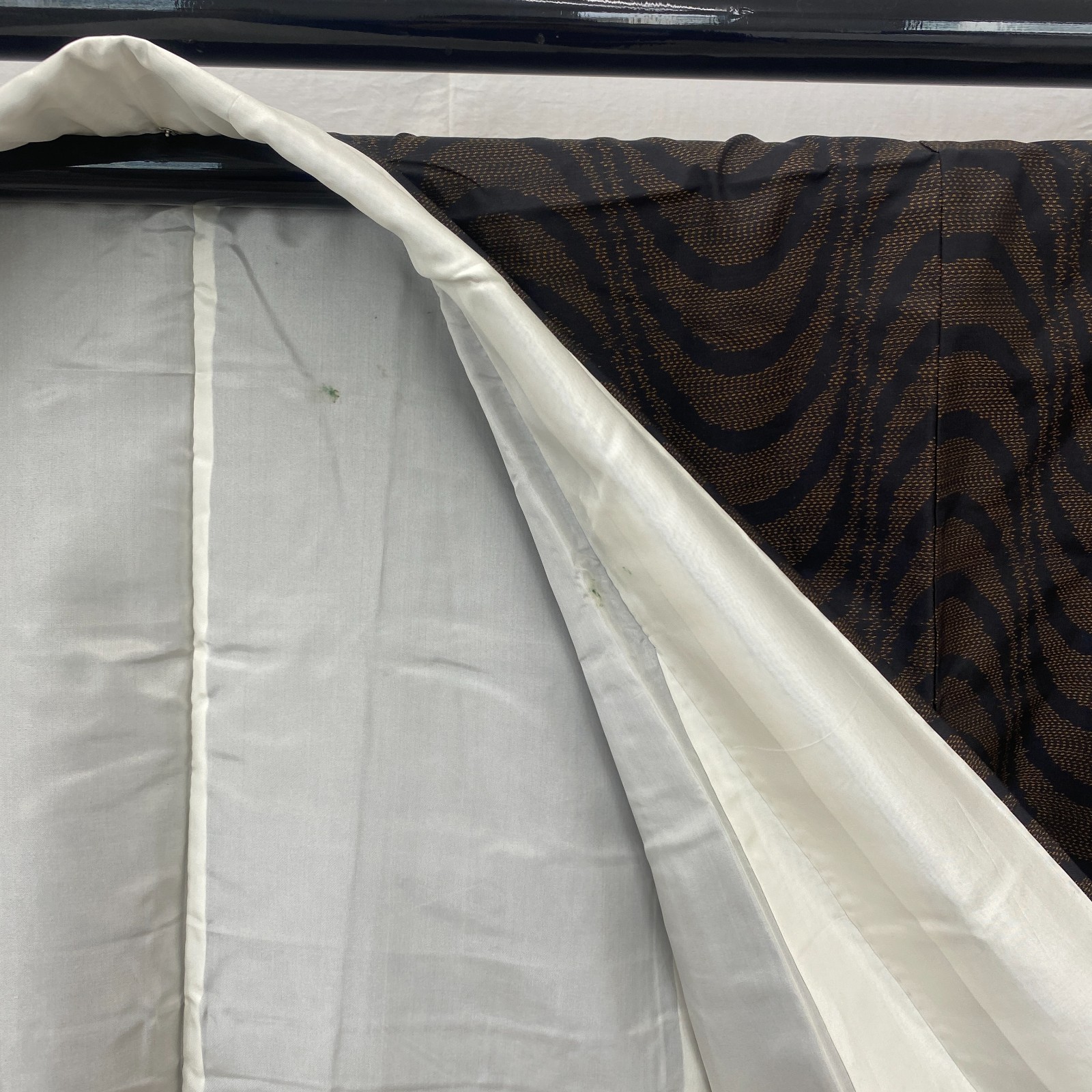 Japanese Vintage Kimono Silk Brown Oshima Tumug Traditional Authentic Length64in
