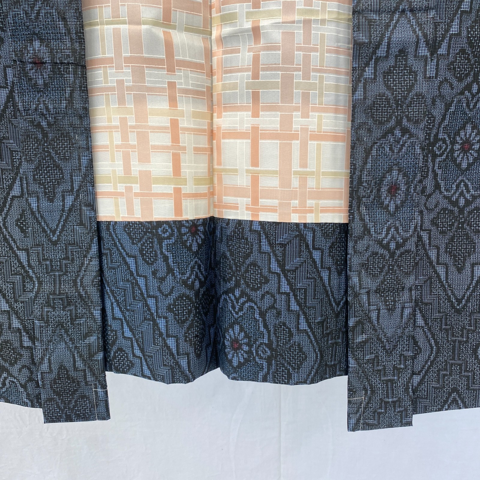 как выглядит Japanese Vintage Kimono Haori Jacket Silk Blue Oshima Traditional Authentic 30in фото
