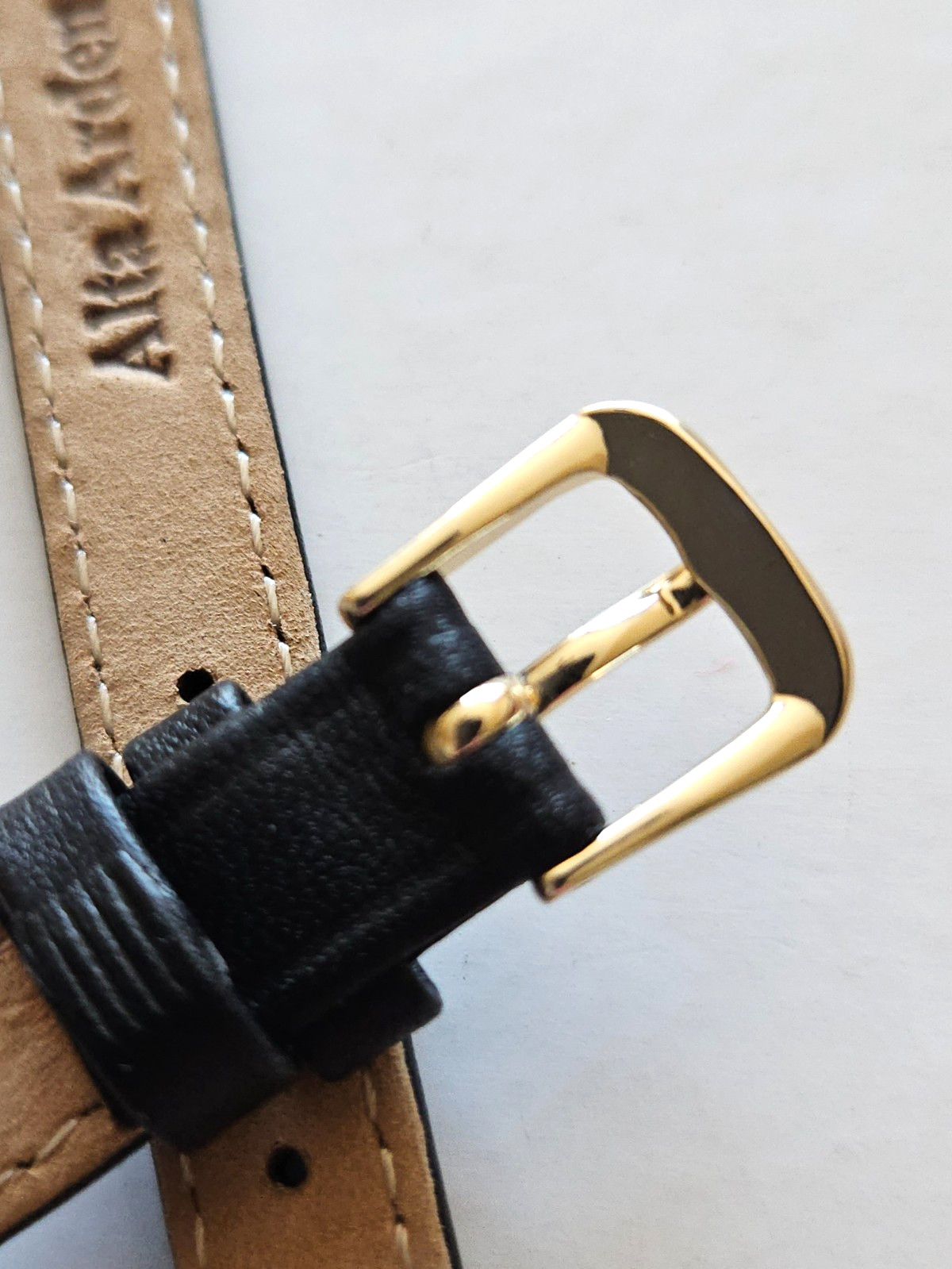 как выглядит 12mm / Long - Black Genuine Leather Watch Band - Gold Buckle / Pins Included фото