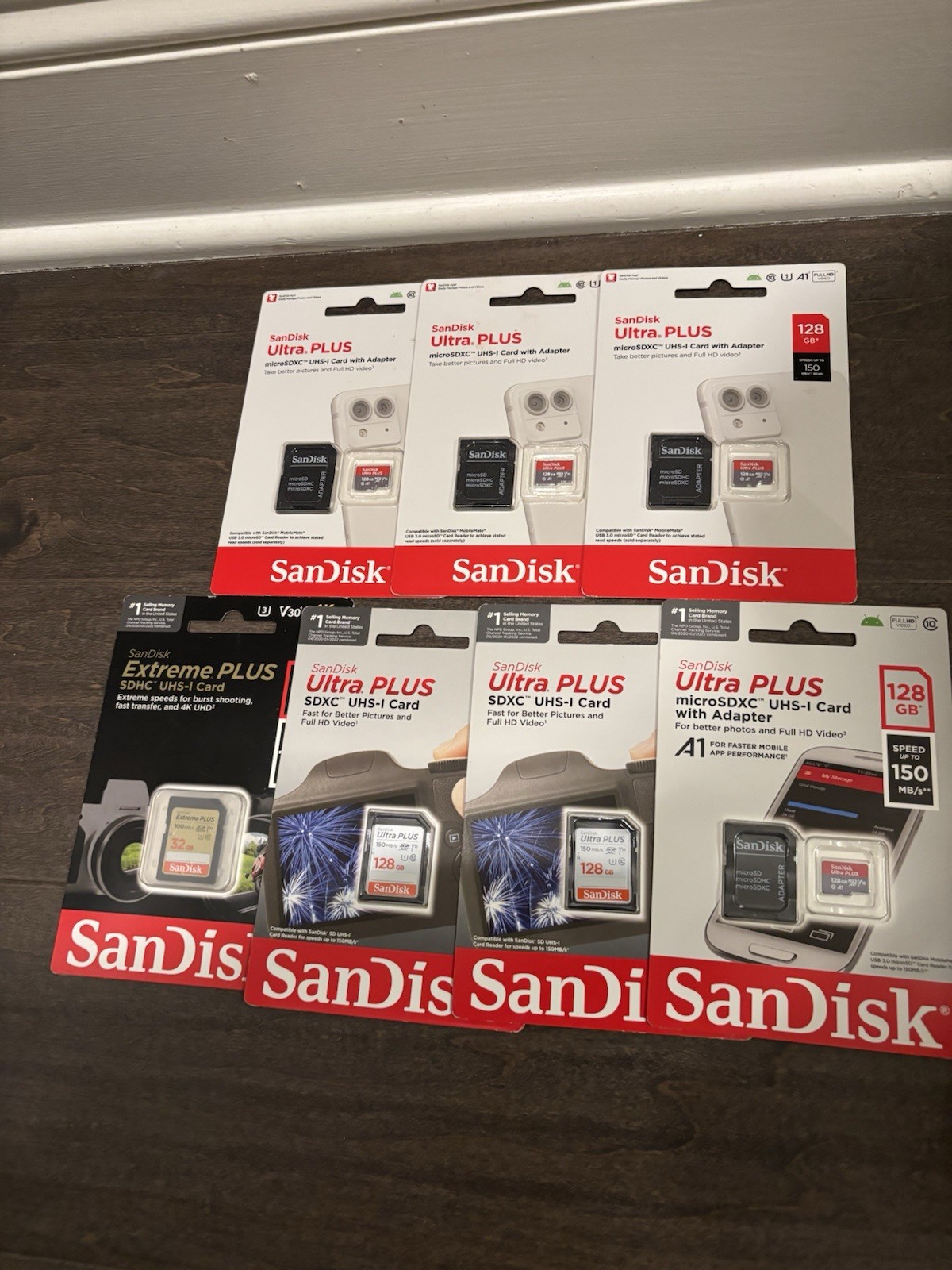 7 New Sandisk Ultra Plus SDXC UHS-I 128 GB