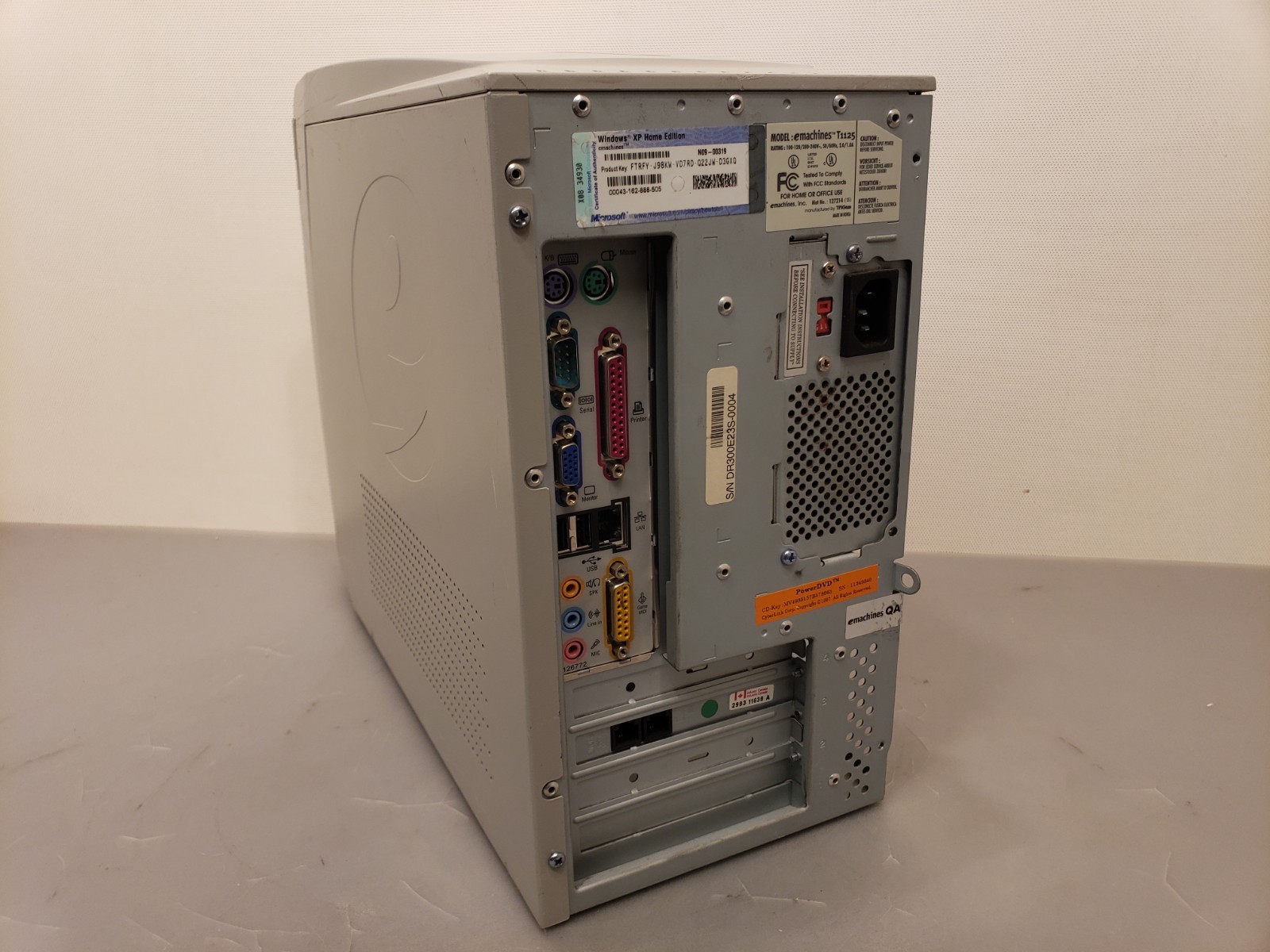 как выглядит Vintage eMachines T1125 Celeron 1.3GHz 128MB 40GB WinXP PC Tower No Side Cover фото