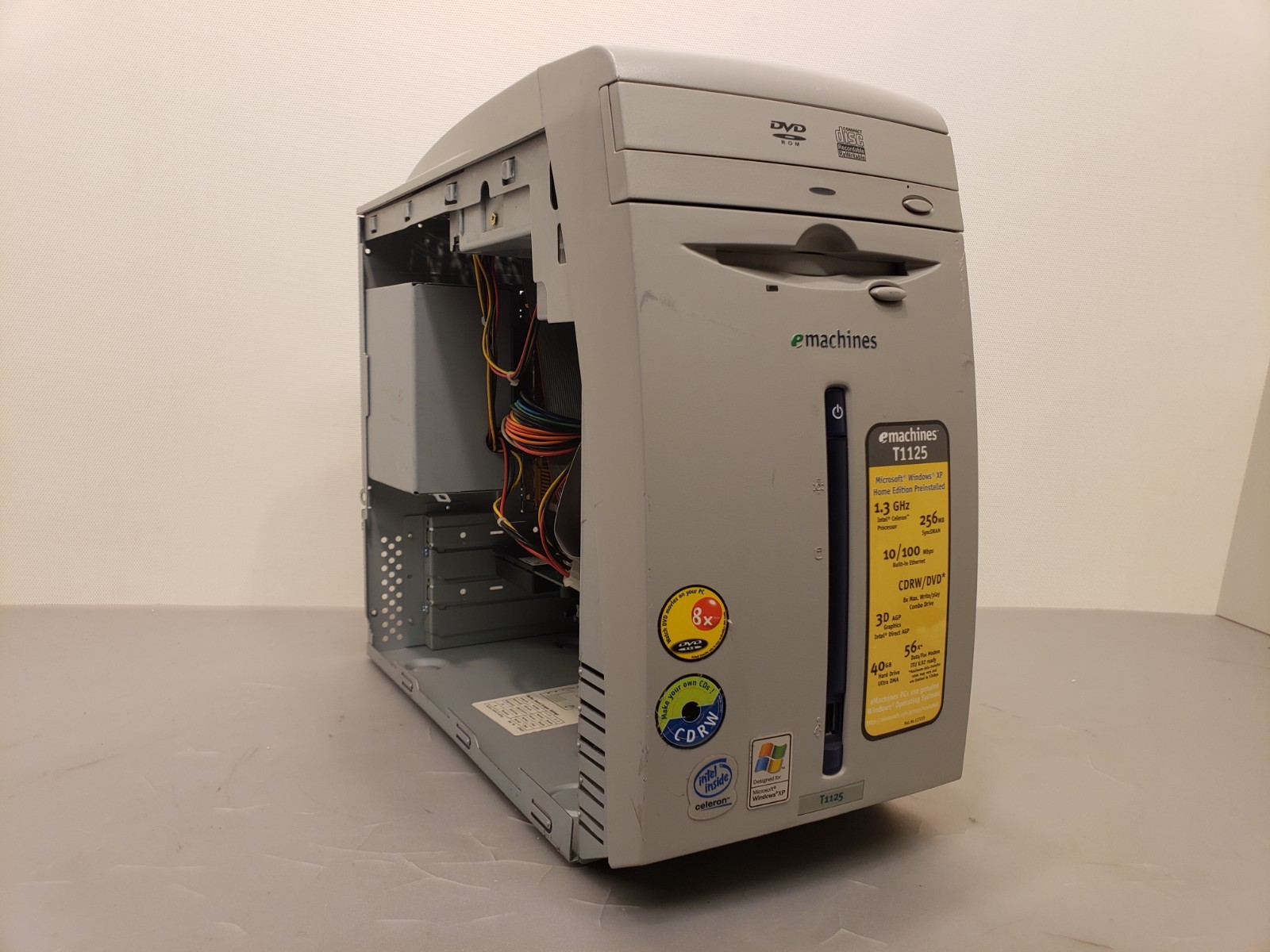 Vintage eMachines T1125 Celeron 1.3GHz 128MB 40GB WinXP PC Tower No Side Cover