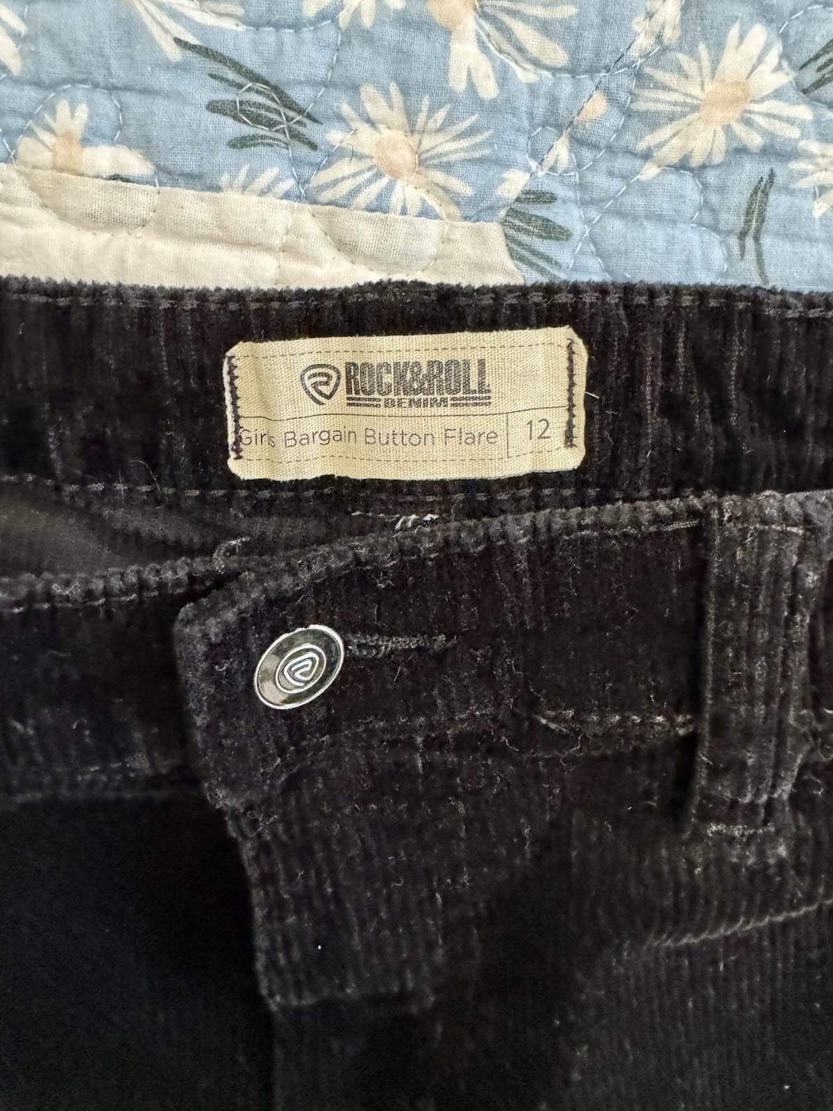 Rock Roll Denim Girls Size 12 Black Corduroy Bargain Button Bell Bottoms Stretch