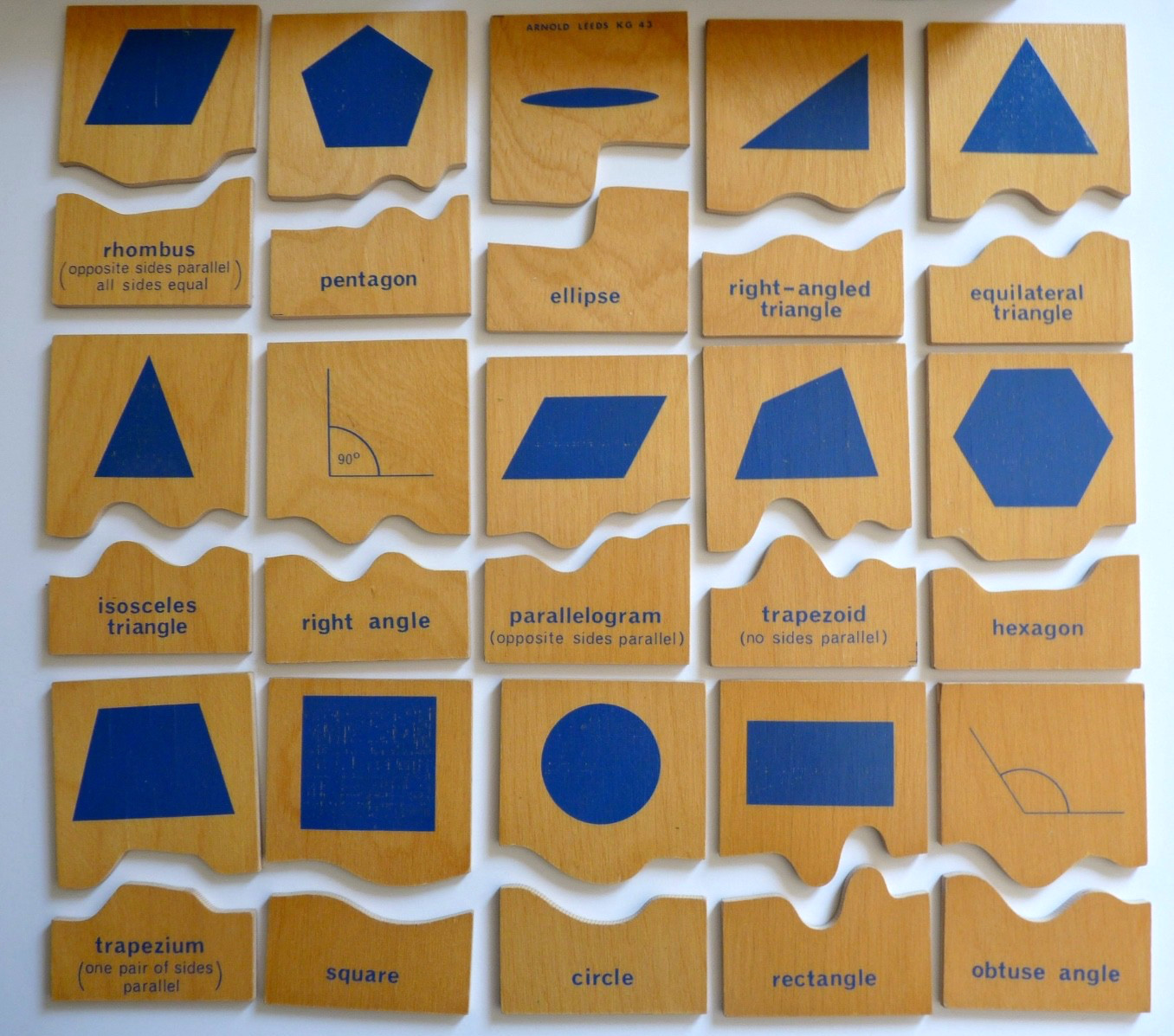 как выглядит Geometry Manipulative Wood 15 Geometric Shapes Match Game Weber Costello фото
