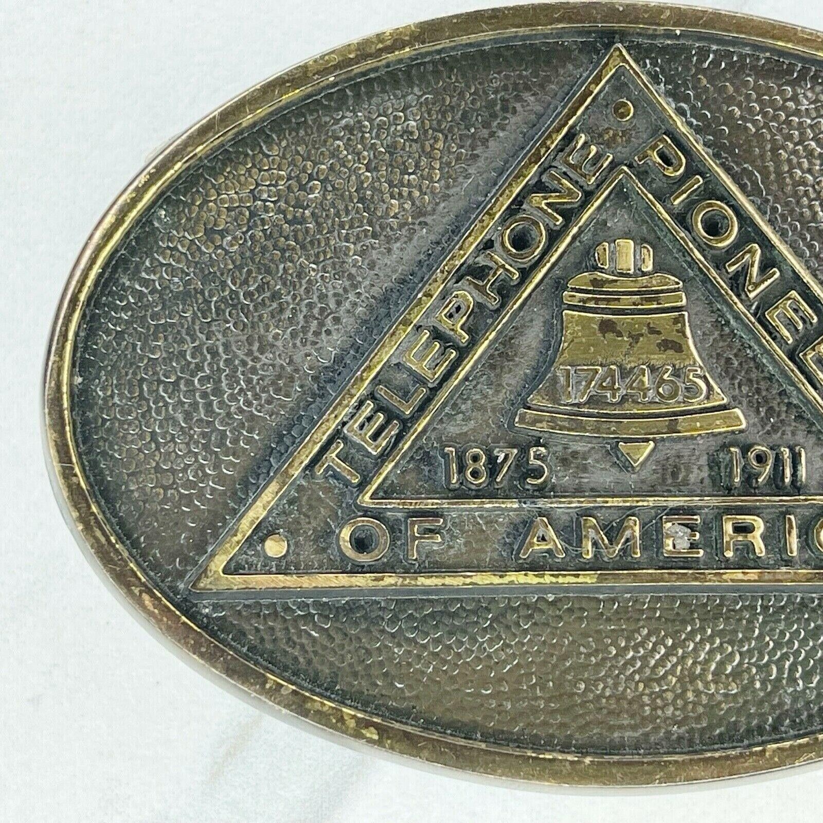 BTS 1978 Solid Brass Telephone Pioneers America Belt Buckle Made USA Vintage