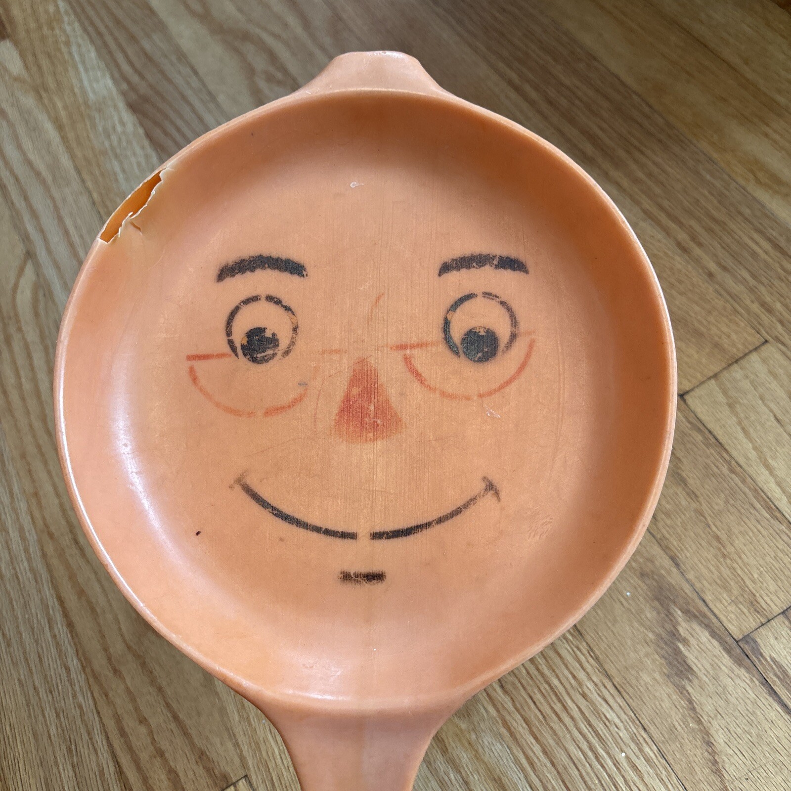 как выглядит Vintage MARX plastic Kids Kitchen Toy Frying Pan Orange flawed фото