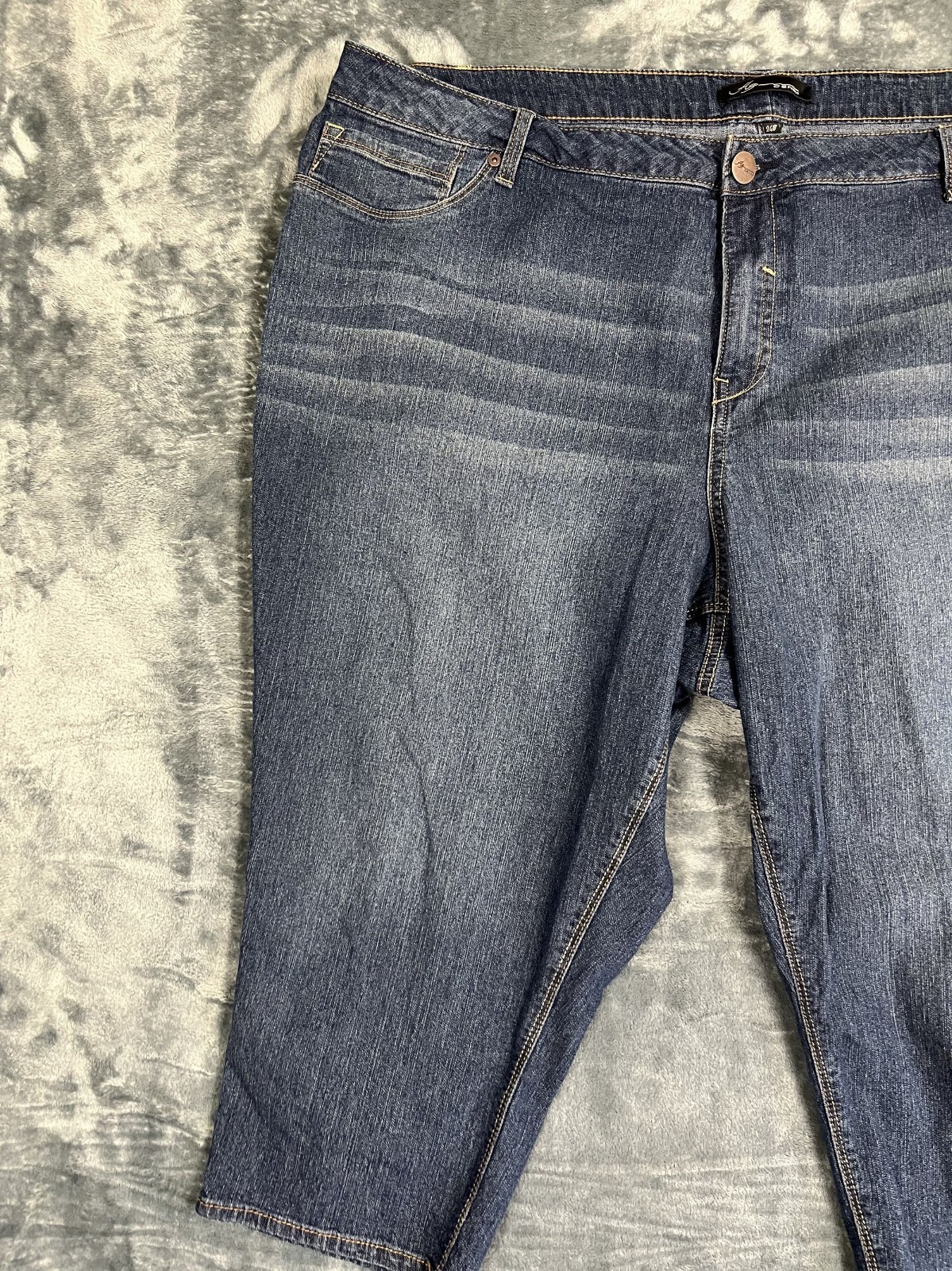 A3 Denim Women's Plus Size 24W Capri Jeans Mid-Wash Stretch Denim Button-Fly