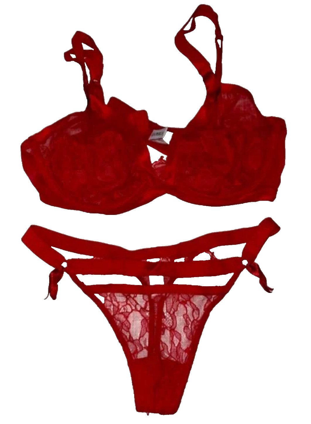 как выглядит La Perla New Red Lace Lingerie Set 36 C Bra Thong size medium Made in Italy фото