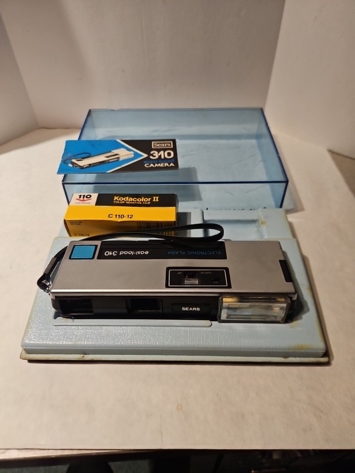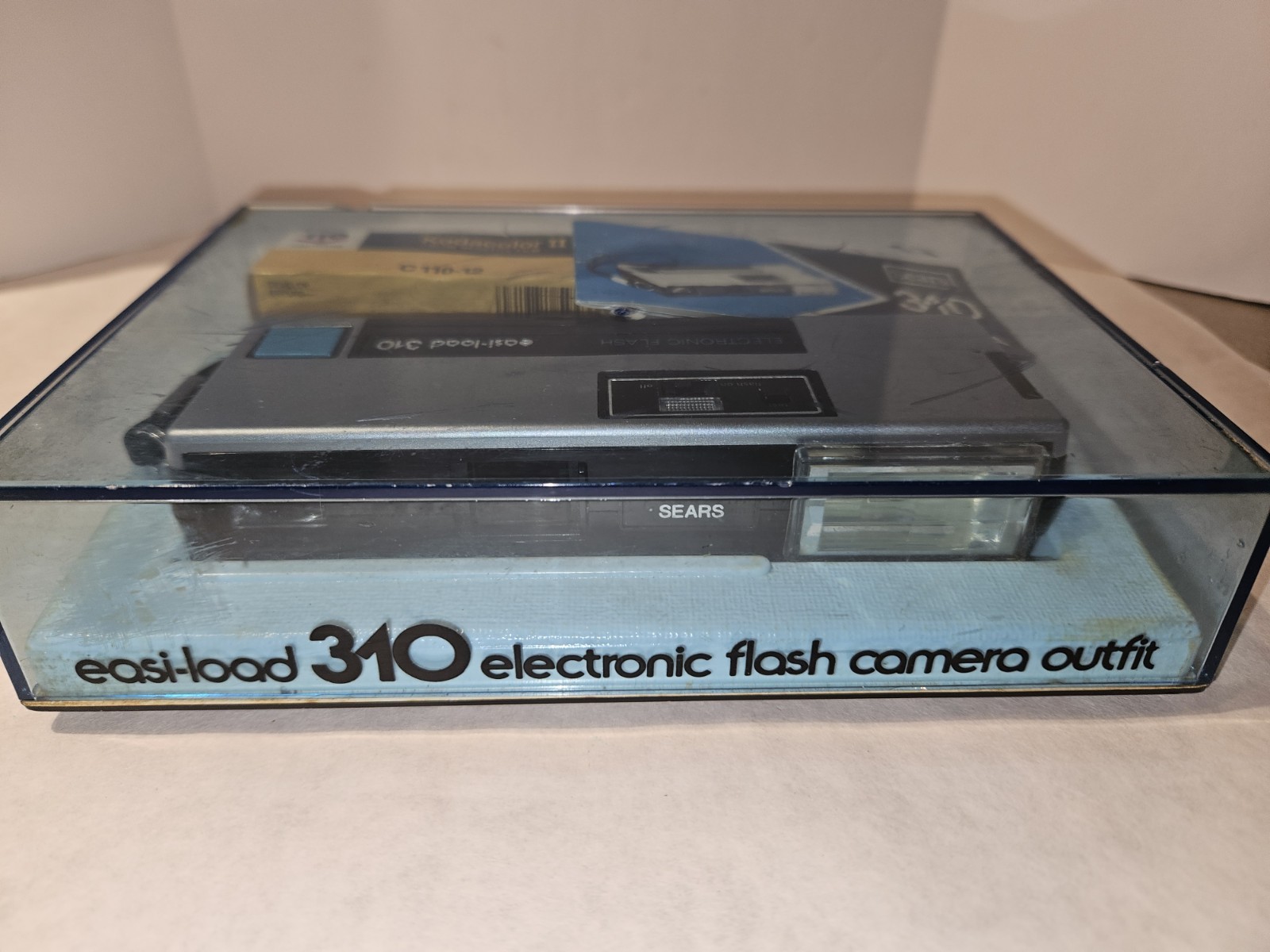VTG SEARS EASI-LOAD 310 ELECTRONIC FLASH CAMERA OUTFIT, W/ORIG. CASE, UNTESTED